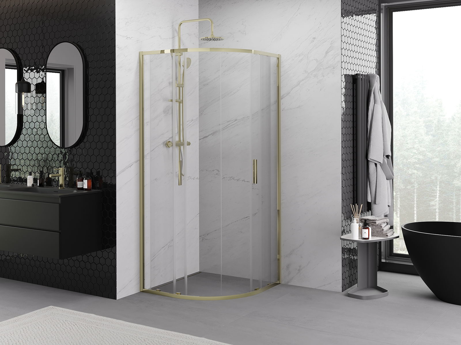 Mexen Exo полукръгла плъзгаща се душкабина 80 x 80 см, прозрачна, златна - 8132-080-080-50-00