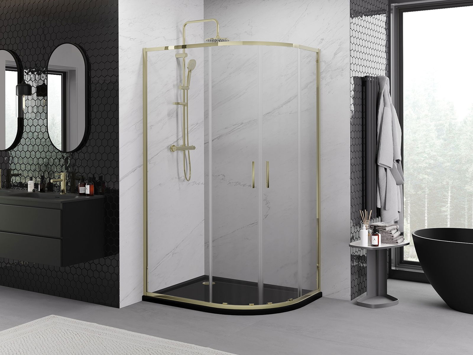 Mexen Exo полукръгла плъзгаща се душ кабина 100 x 80 cm, прозрачна, златна - 8132-100-080-50-00