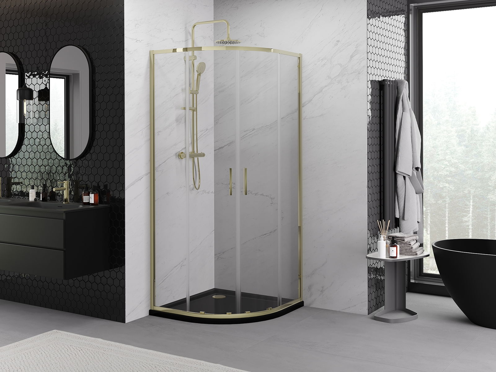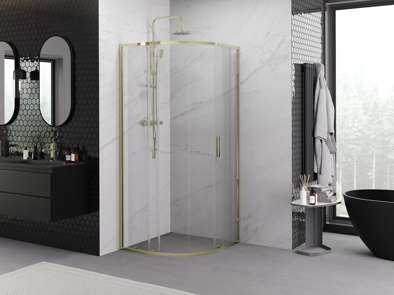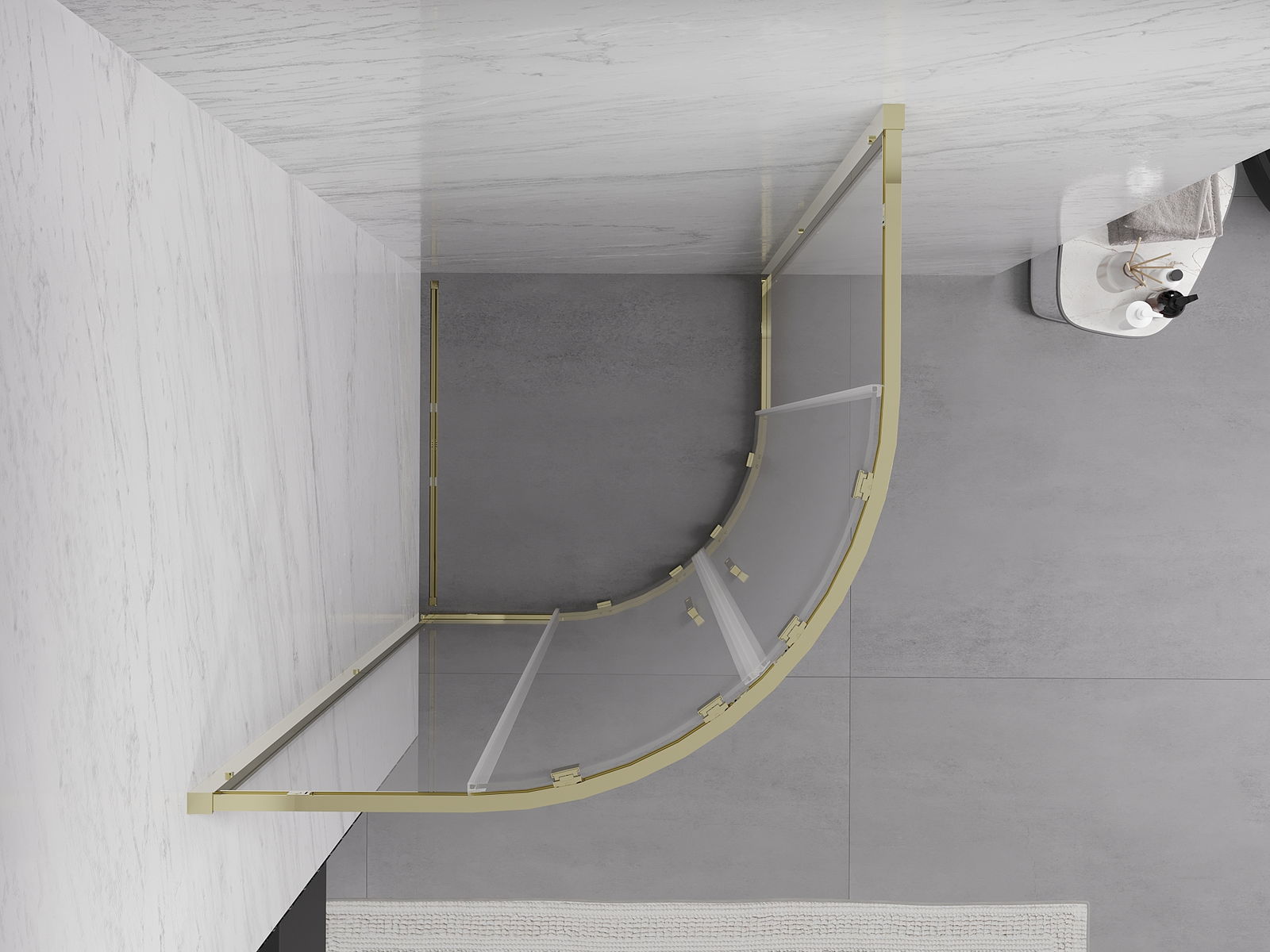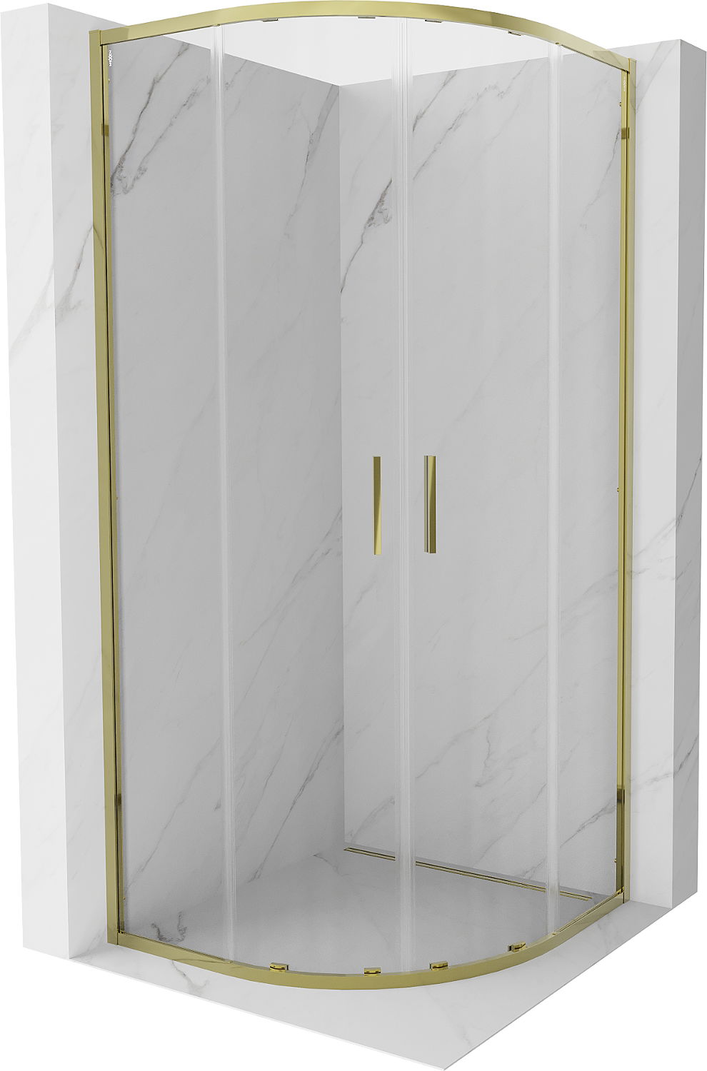 Mexen Exo полукръгла плъзгаща се душ кабина 90 x 90 см, прозрачна, златна - 8132-090-090-50-00