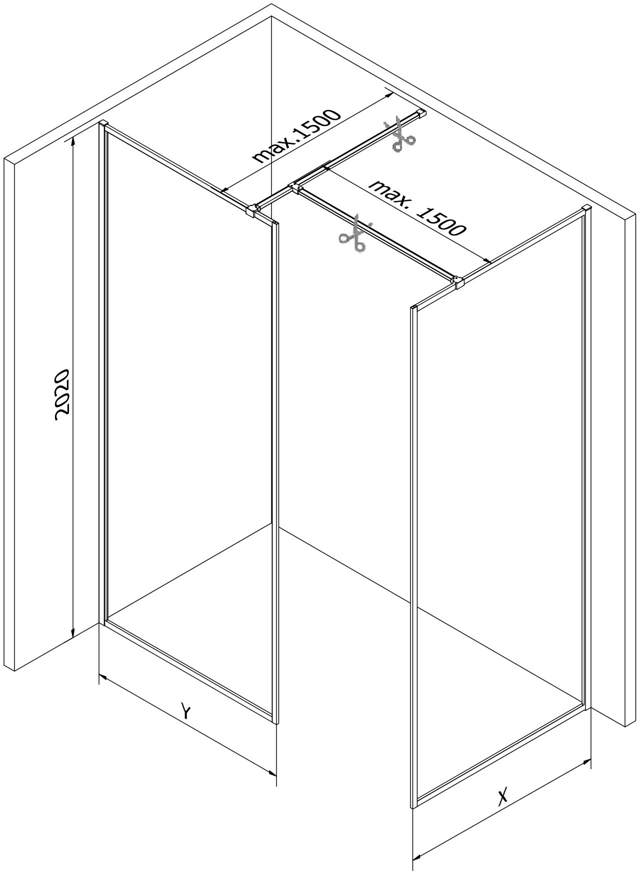 Ширина: 85x70 см (стена X - 85 см, стена Y - 70 см)