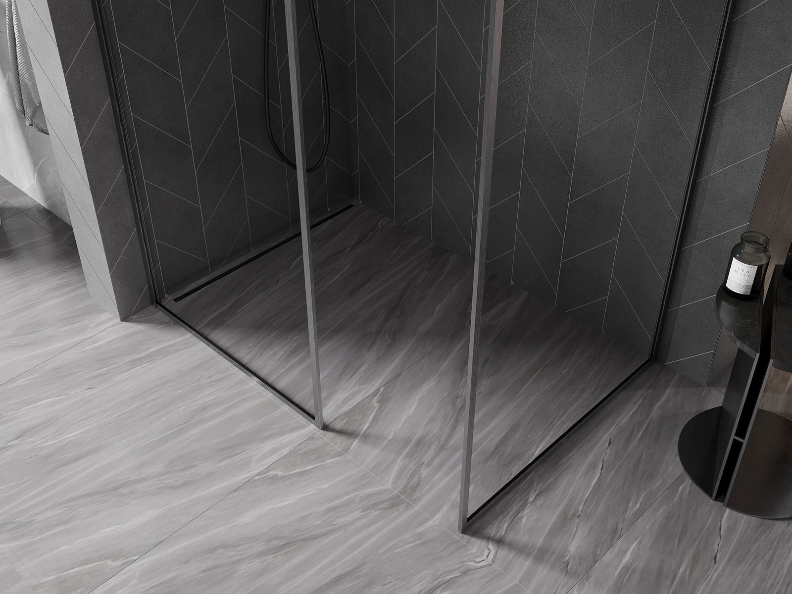 Mexen Kioto-F Душ панел тип Walk-in с рамка 180 x 70 см, прозрачно стъкло 8 мм, четката в цвят gun gray - 800-180-202-04-66-070