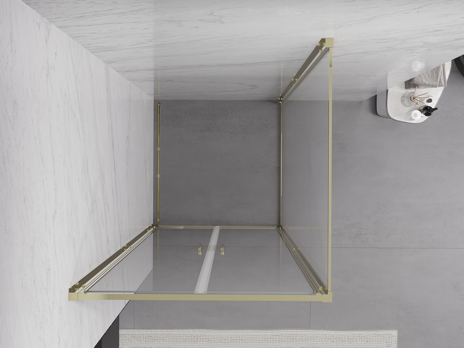 Удобната и практична дръжка е изработена от здрав и устойчив метал. Модерната форма в съчетание с покритието, съответстващо на цвета на профилите, придава на цялото модерен и стилен вид, подчертавайки естетиката на всяка баня.