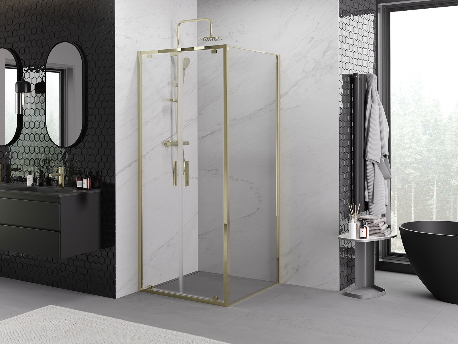 Mexen Exo душ кабина с люлееща се врата 80 x 80 см, прозрачна, злато - 8182-080-080-50-00