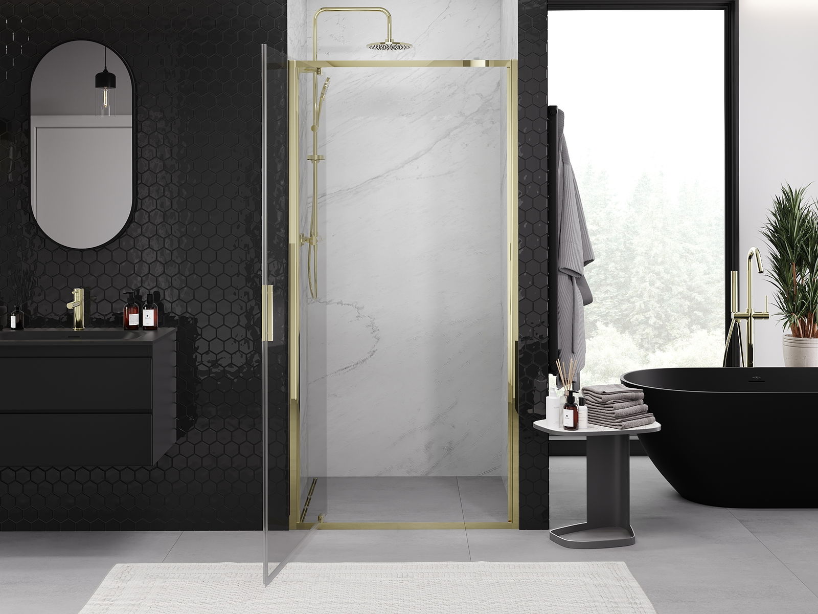 Mexen Exo сгъваеми душ врати 95 см, прозрачни, златни - 8181-095-000-50-00