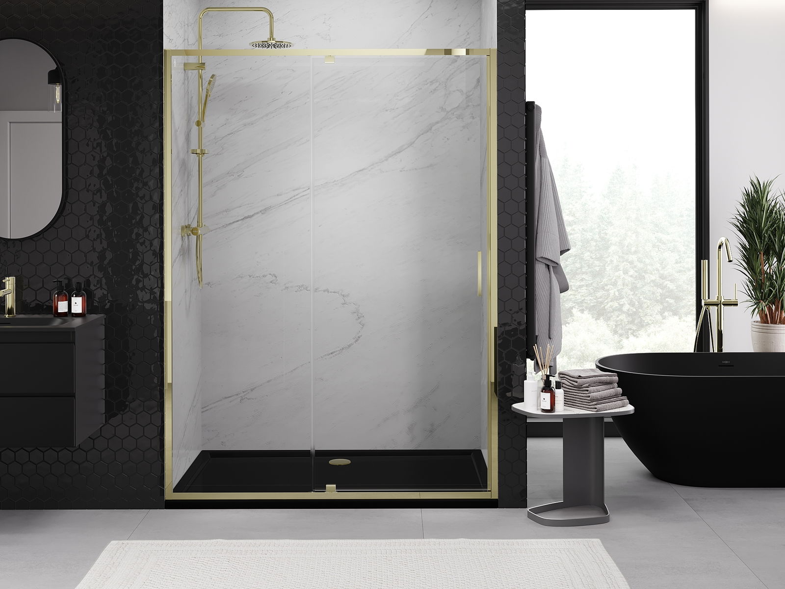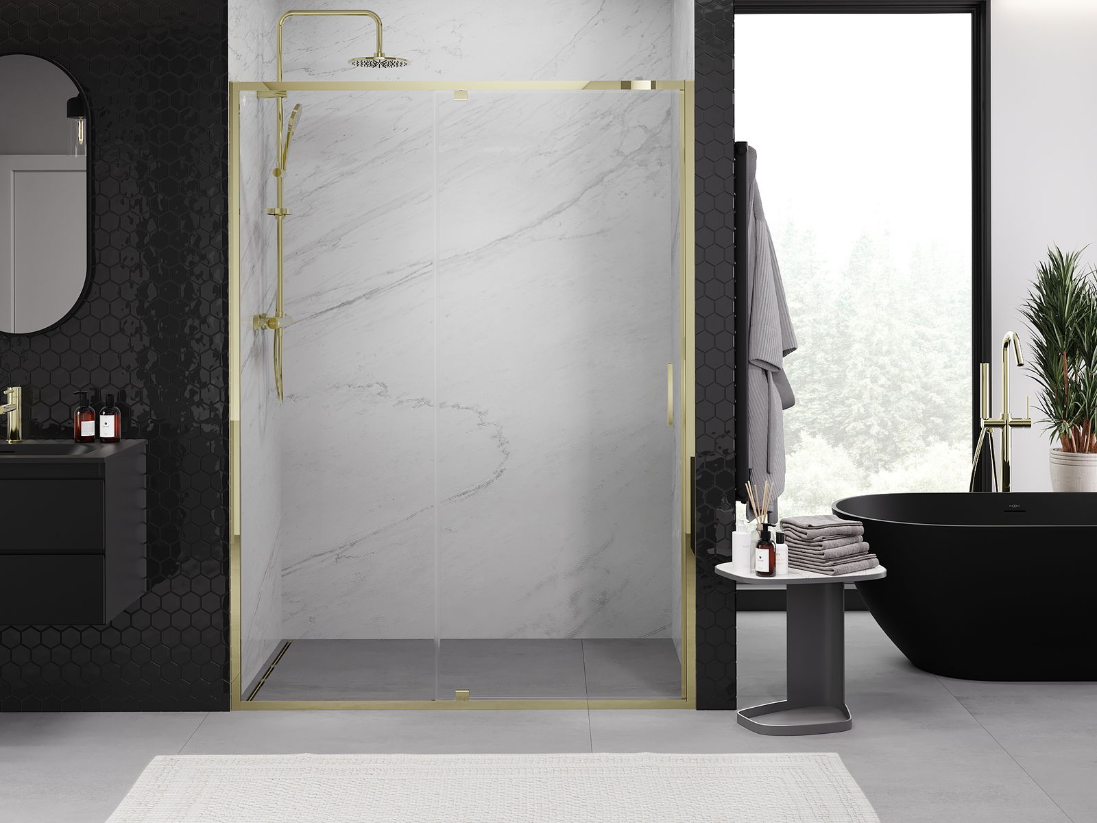 Mexen Exo душ врати на панти 150 см, прозрачни, златни - 819-150-000-50-00
