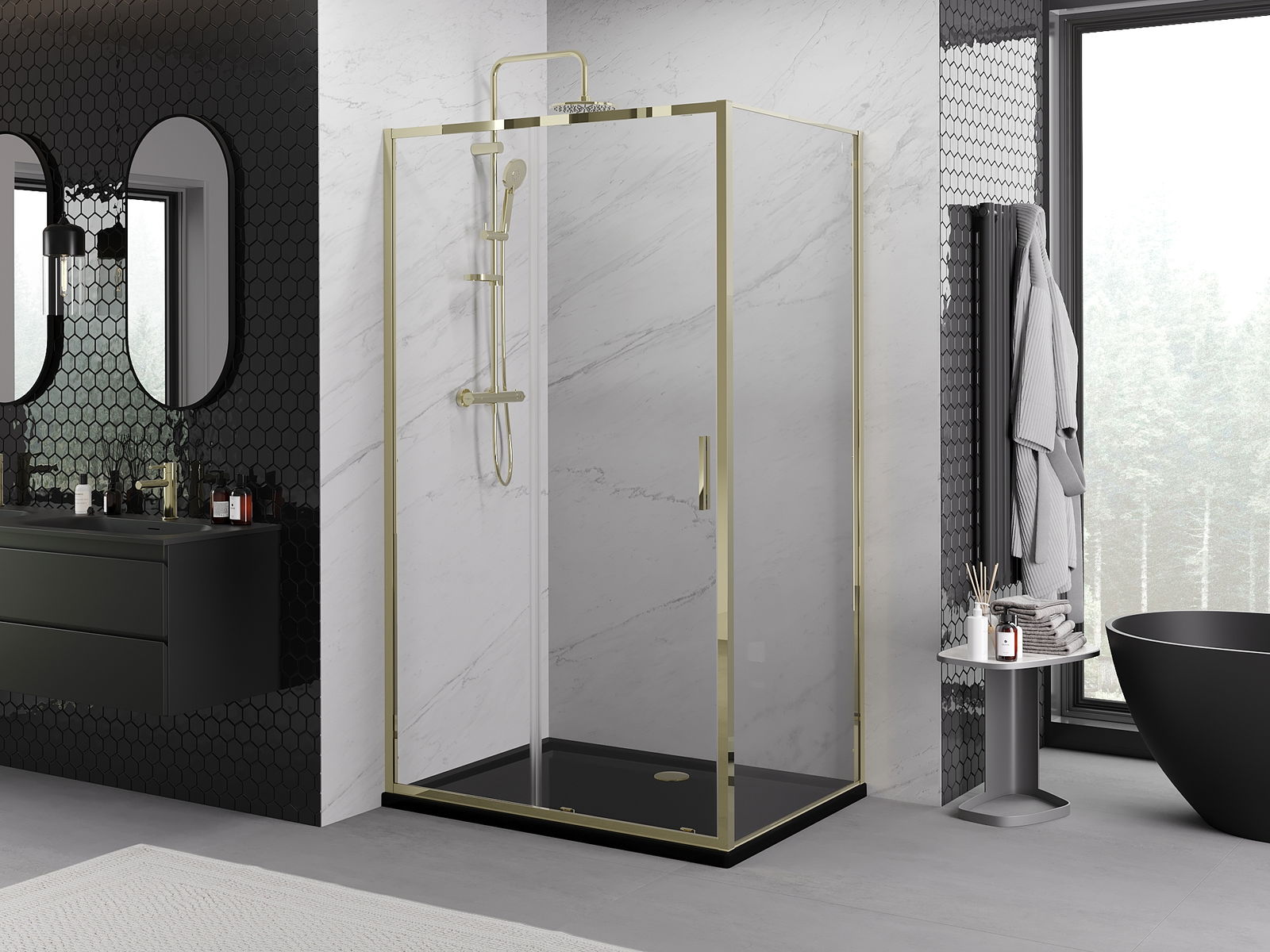 Mexen Rio квадратна душ кабина 90 x 90 см, прозрачна, черна - 860-090-090-70-00