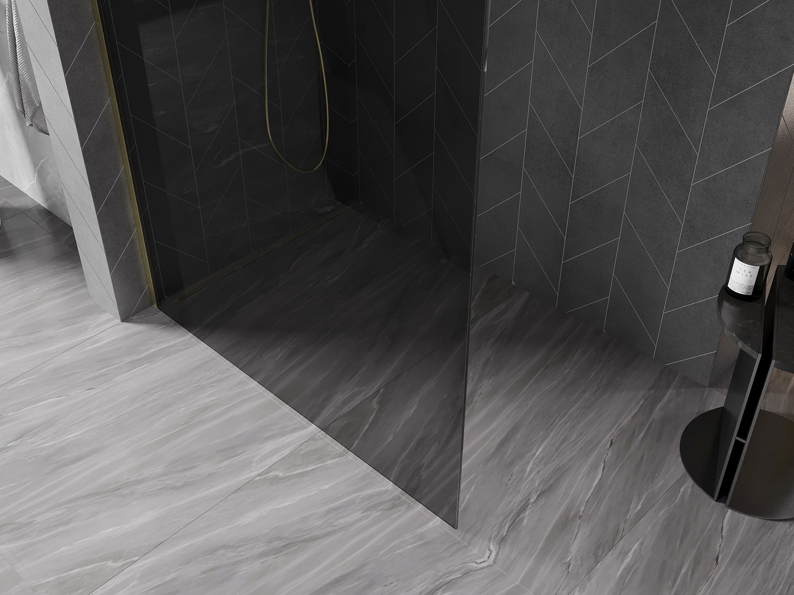 Mexen Kioto-X стъклена преграда за душ тип Walk-in 60 x 200 см, графит 10 мм, злато четкано - 800-060-101-55-40-X