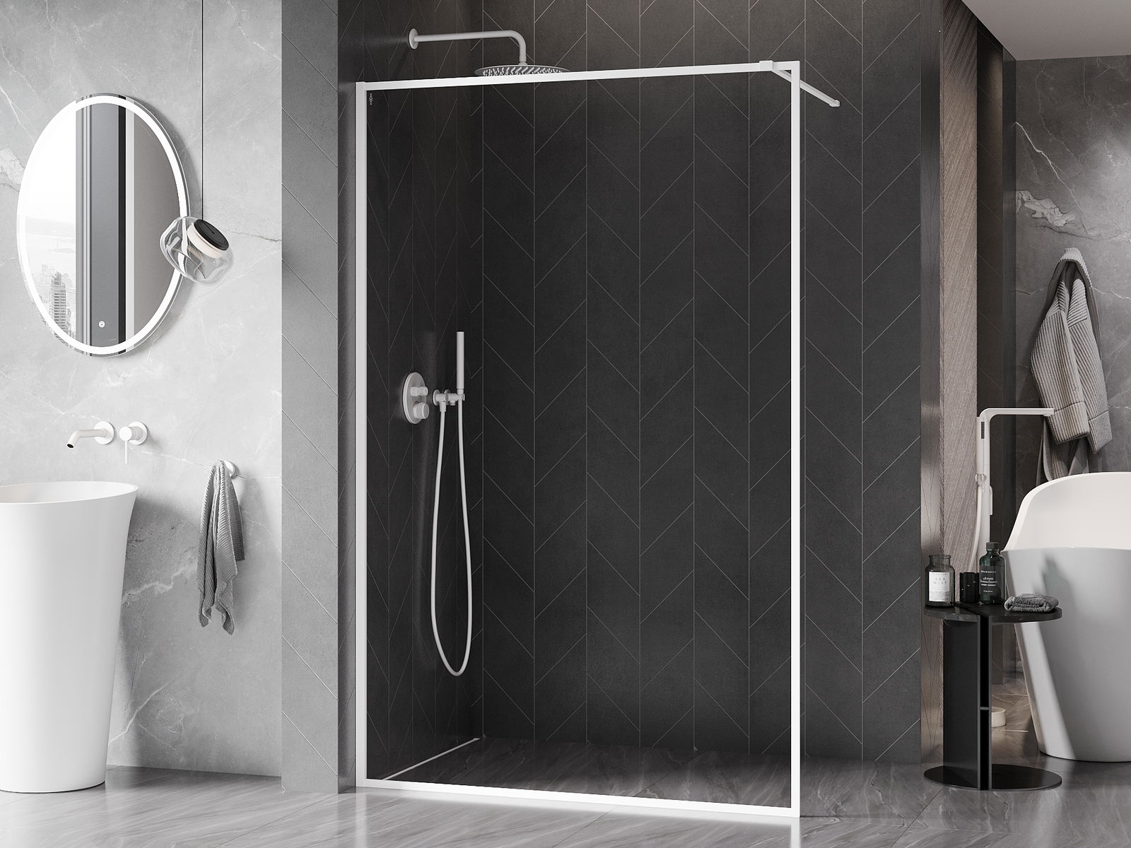 Благодарение на използването на универсалната система за монтаж, душовите врати могат да бъдат монтирани отдясно или отляво, в зависимост от нуждите. Благодарение на това можете лесно да проектирате душ, който е напаснат към пространството в банята.