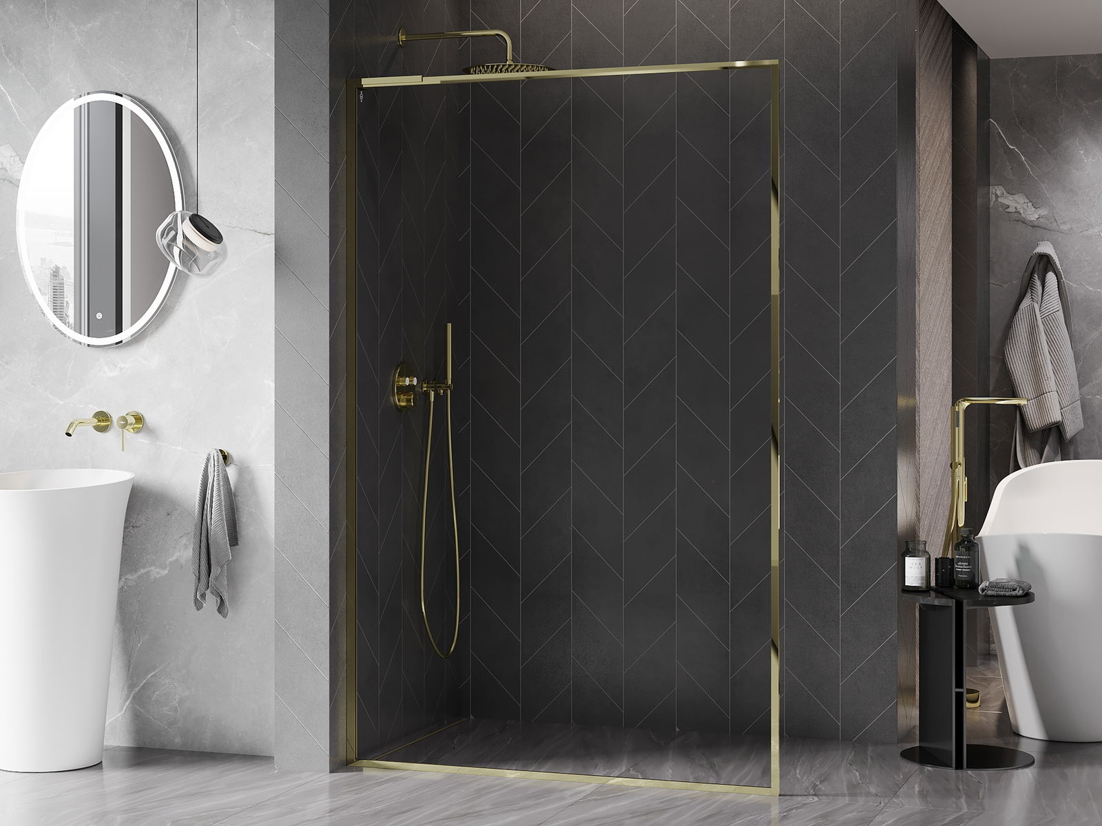 Mexen Kioto-XF L Стенна преграда за душ Walk-in с рамка 100 x 202 см, прозрачна 10 мм, златна - 800-100-174-50-00-XF