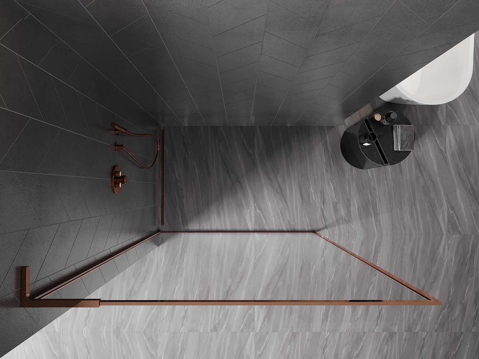 Mexen Kioto-F L Душ кабина Walk-in с рамка 50 x 202 см, прозрачно 8 мм, розово злато - 800-050-174-60-00