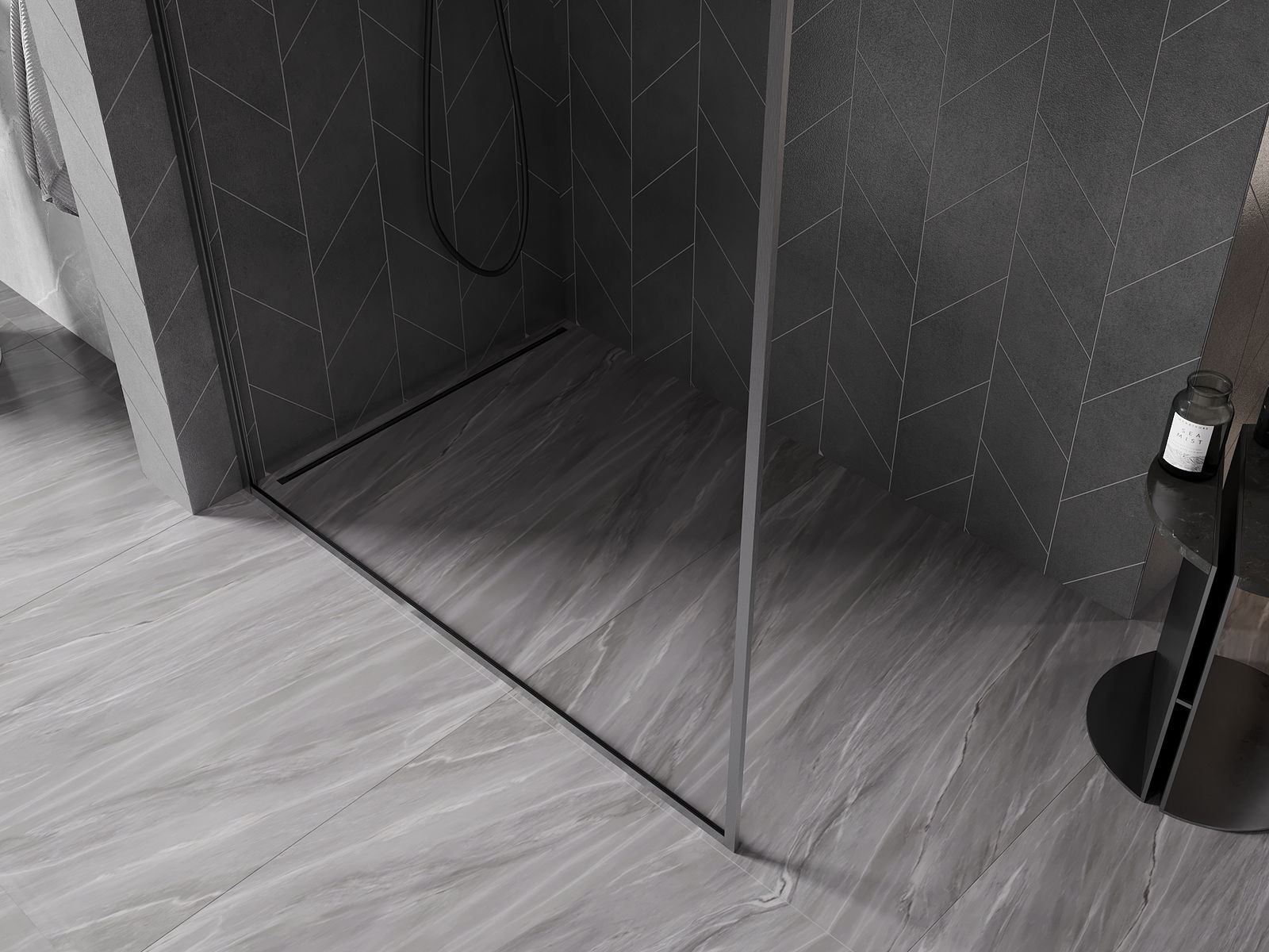 Mexen Kioto-F L Душ кабина Walk-in с рамка 80 x 202 см, прозрачно 8 мм, четка в цвят gun gray - 800-080-174-66-00