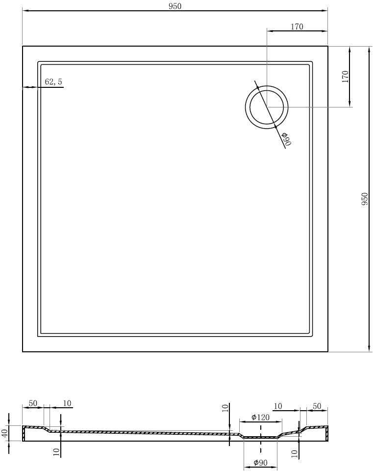 Mexen Flow квадратен душ-корито slim 95 x 95 cm, бял гланц - 46S109595