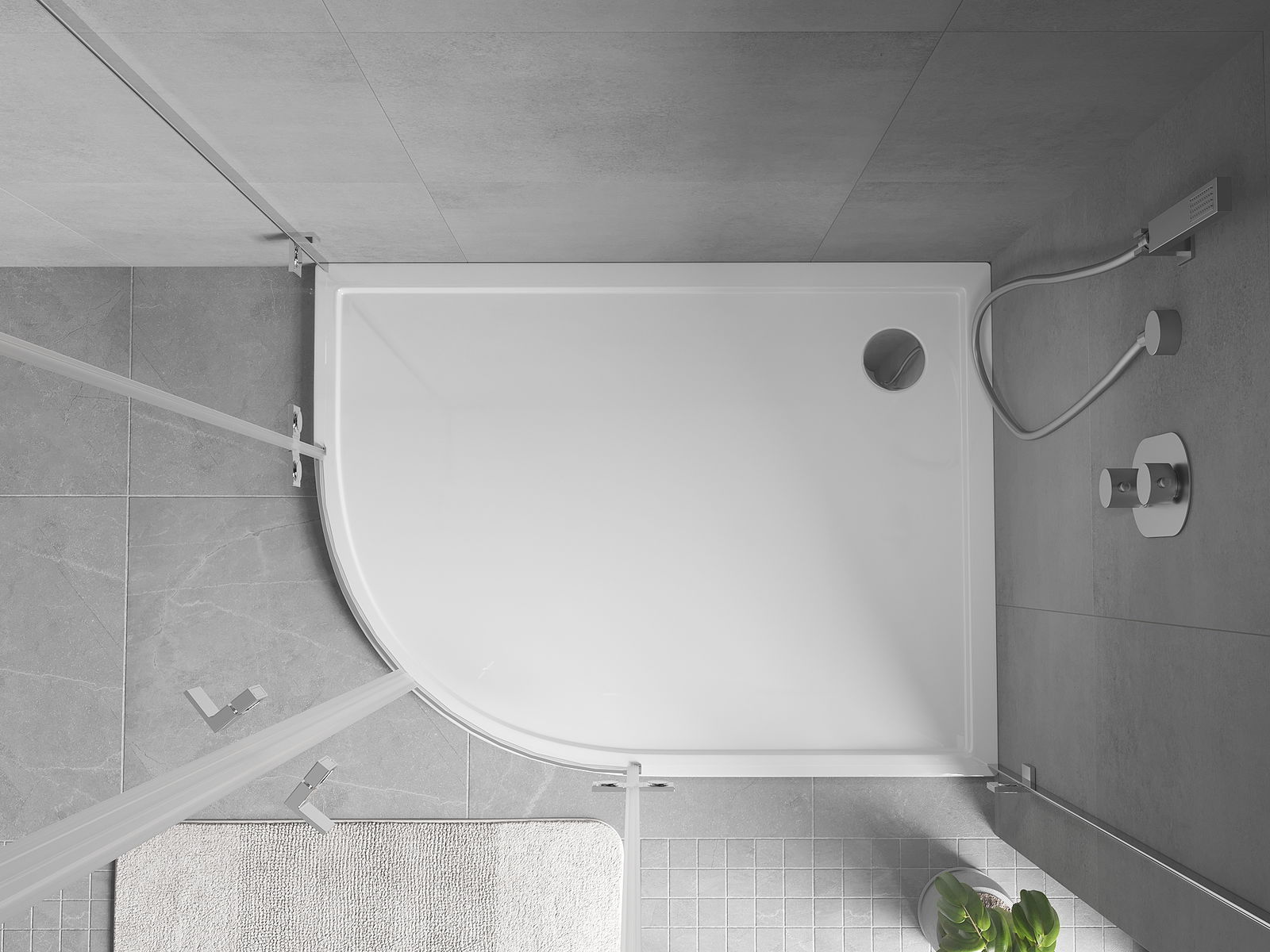 Mexen Flow полукръгъл асиметричен slim десен 100 x 80 см, бял гланц - 46Q108010R