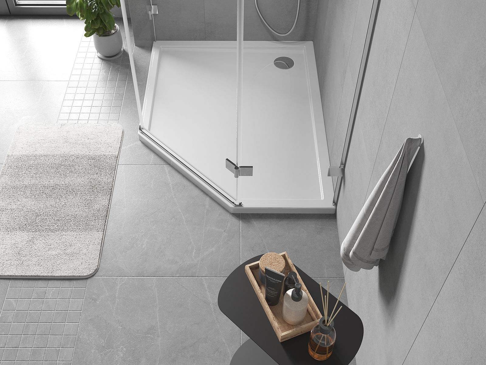 Mexen Flow пет-ъгълна входка, тънка, лява 100 x 90 см, бял гланц - 46P109010L