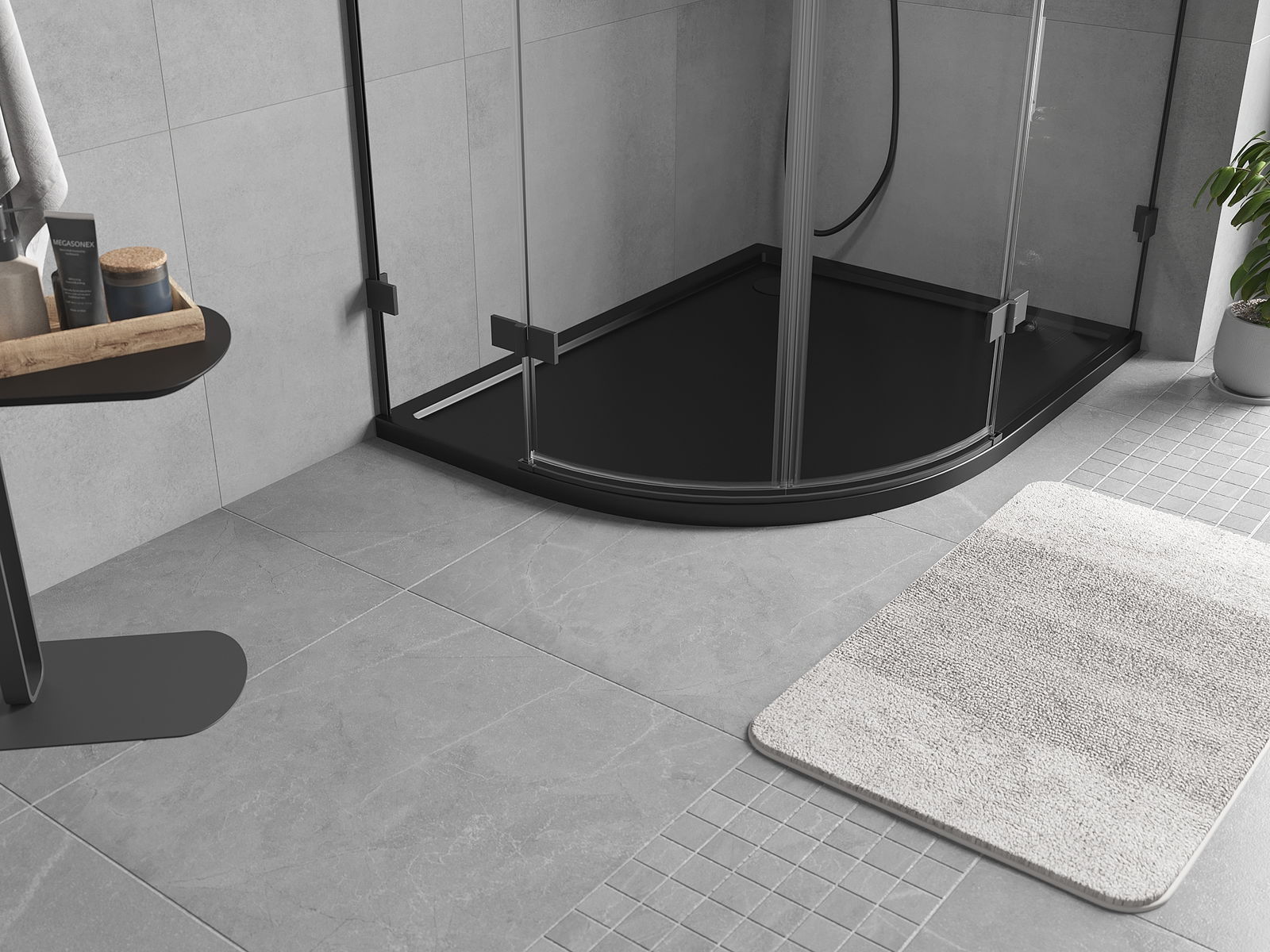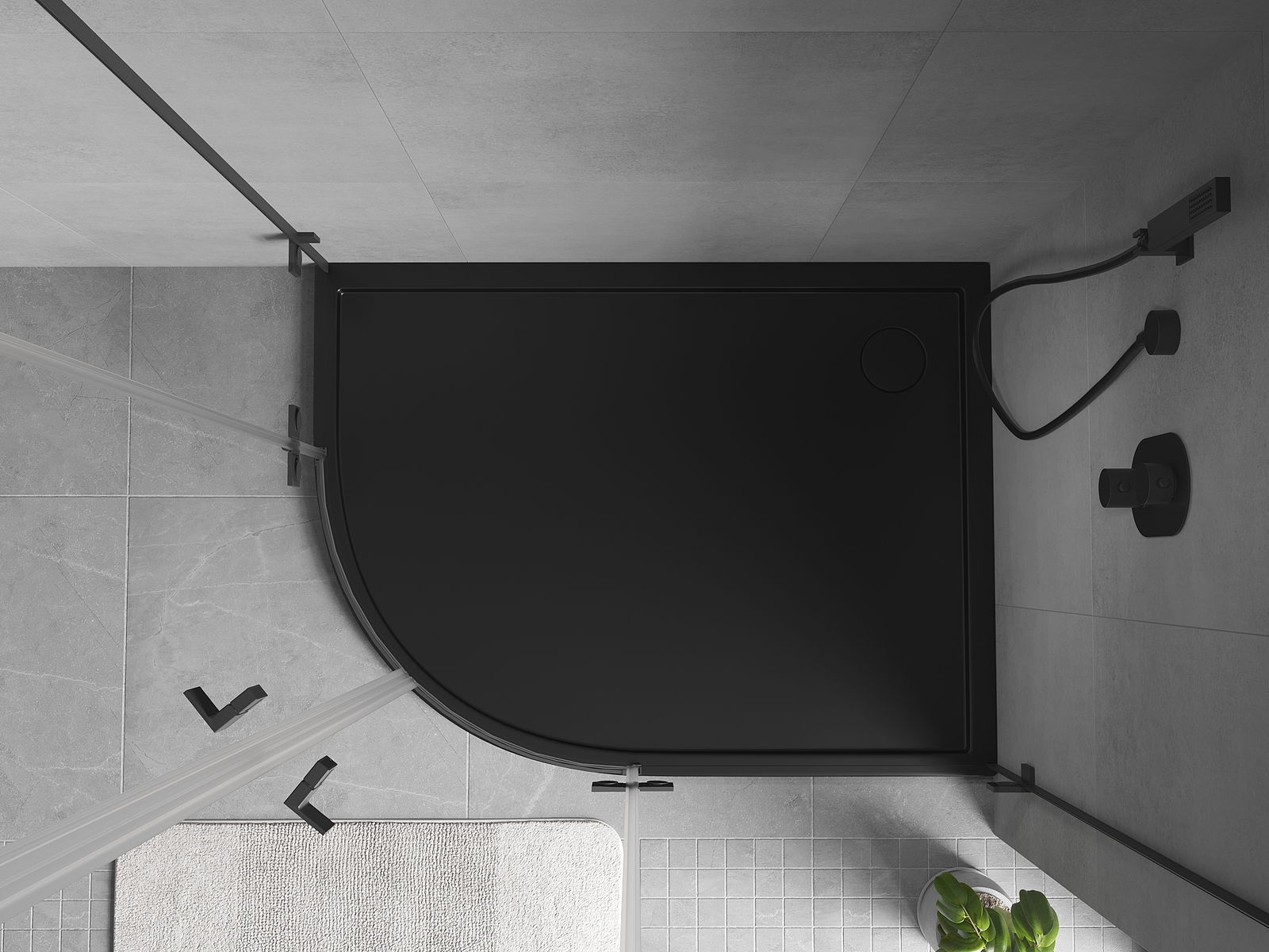 Mexen Flow полукръгъл асиметричен нисък десен поддушови корита 100 x 80 см, черен мат - 46Q708010R
