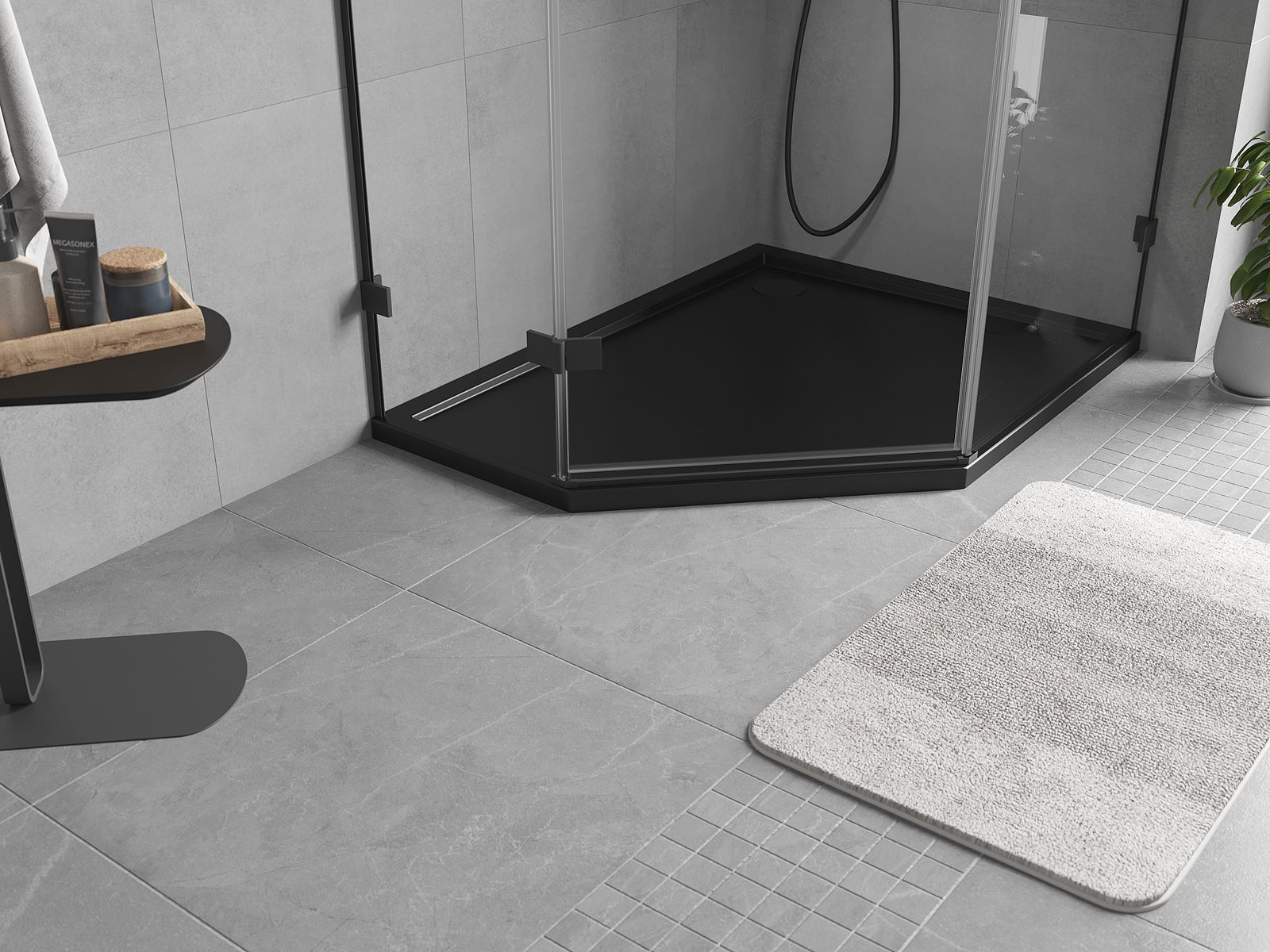 Mexen Flow петстенен, тънък душ корито дясно 100 x 80 см, черен мат - 46P708010R