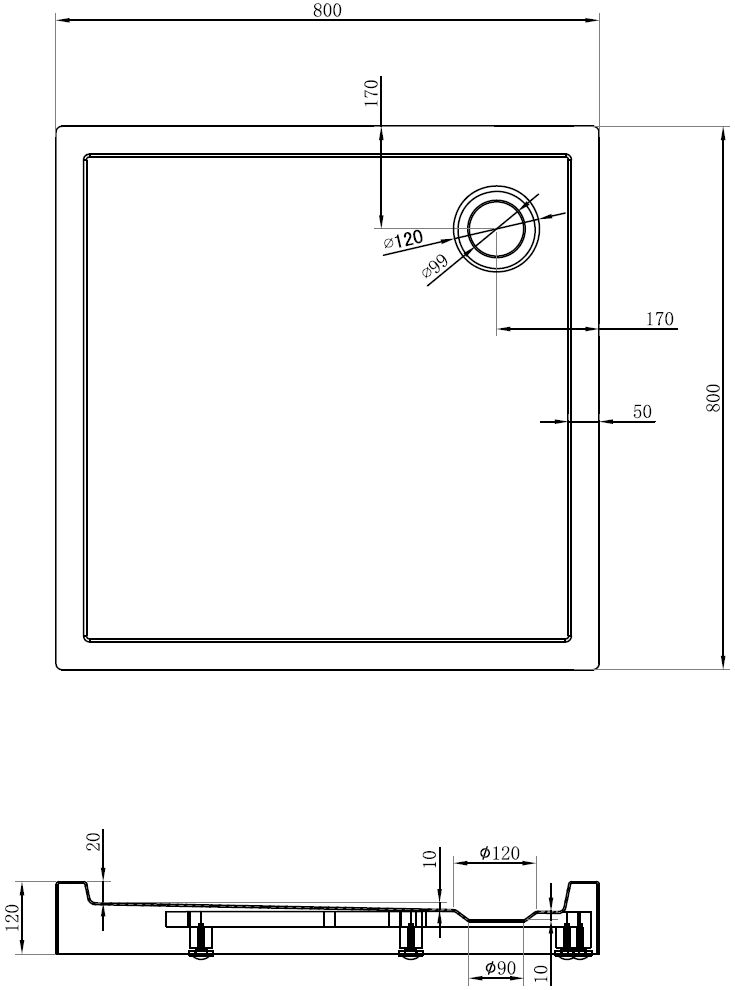 Дъното на душовия поднос е допълнително укрепено със стъклопласт и HDF плоча, което го прави не само издръжливо, но също така гарантира безопасност по време на къпане. Подсиленото дъно осигурява дългогодишна употреба на подноса.