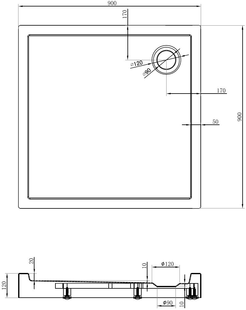 Дъното на душовия поднос е допълнително укрепено със стъклопласт и HDF плоча, което го прави не само издръжливо, но също така гарантира безопасност по време на къпане. Подсиленото дъно осигурява дългогодишна употреба на подноса.
