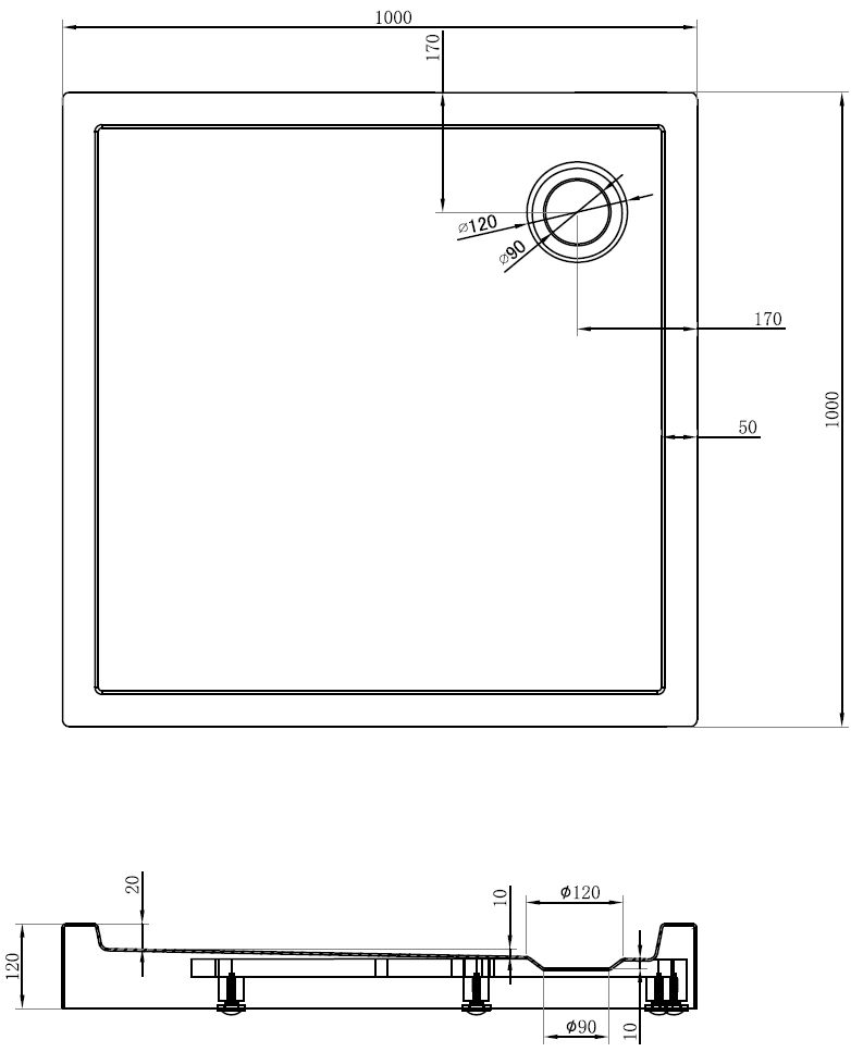 Дъното на душовия поднос е допълнително укрепено със стъклопласт и HDF плоча, което го прави не само издръжливо, но също така гарантира безопасност по време на къпане. Подсиленото дъно осигурява дългогодишна употреба на подноса.