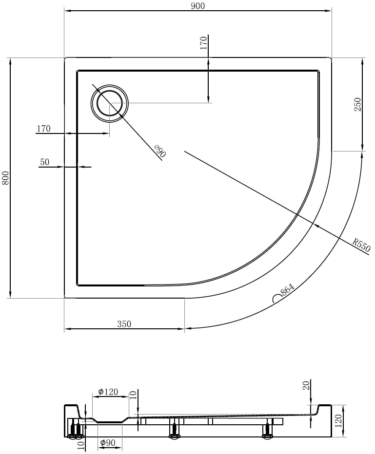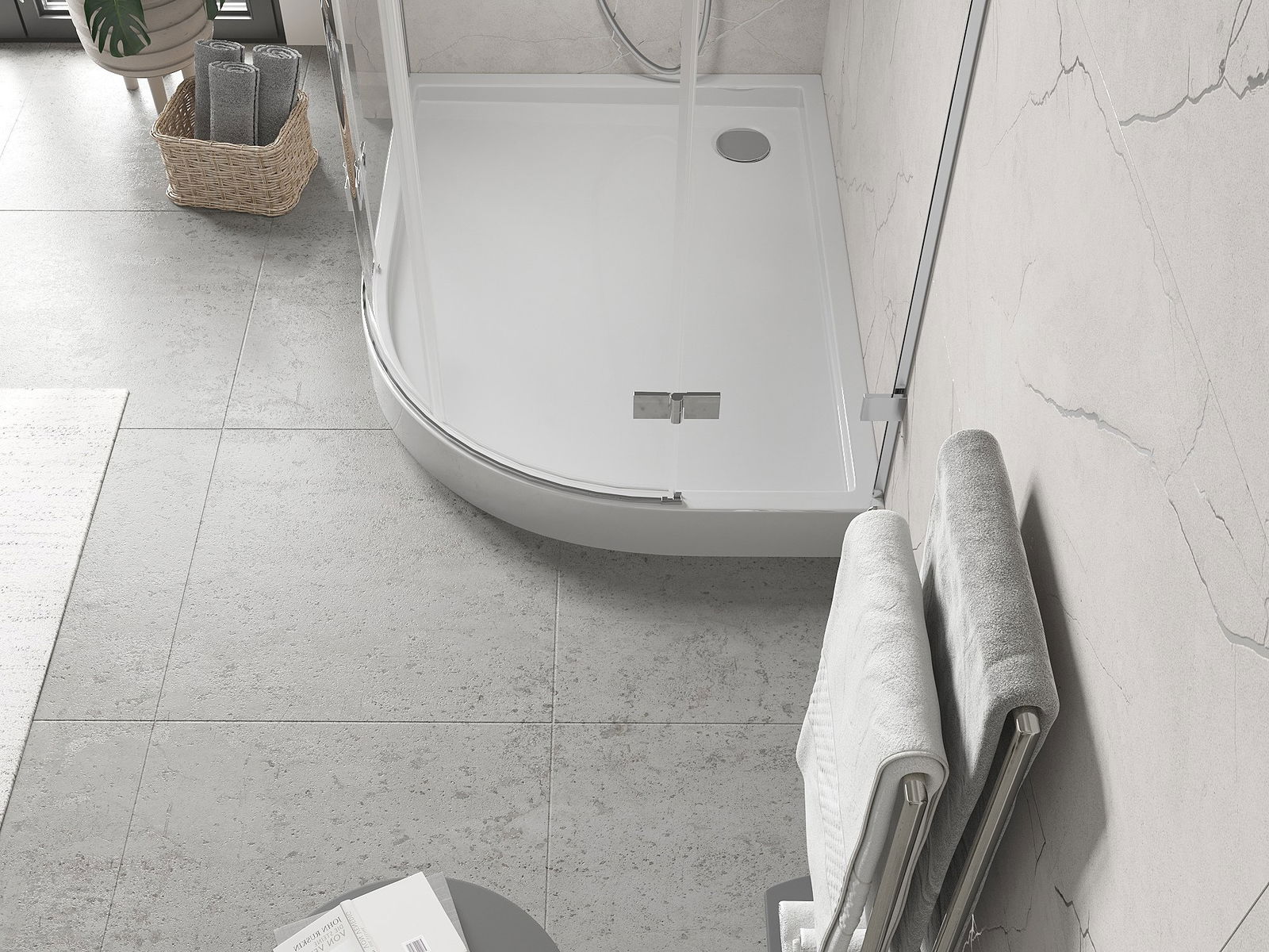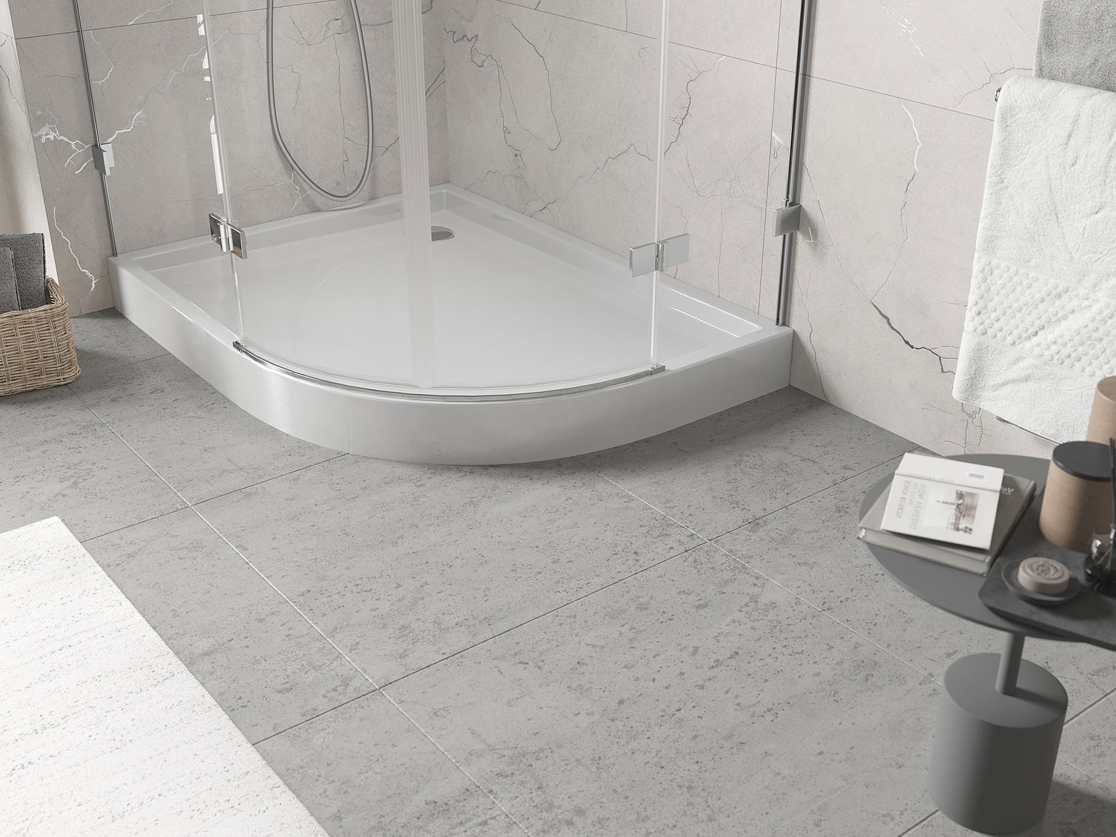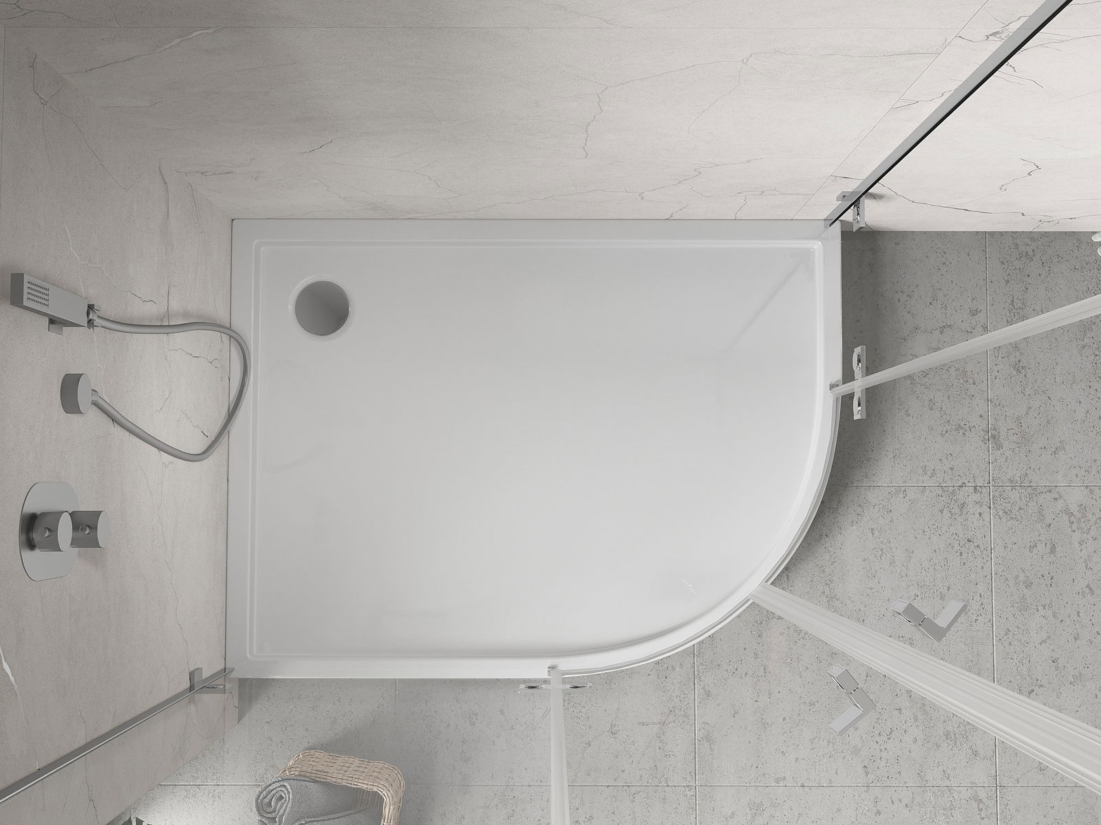 Mexen Flow+ асиметричен полукръгъл ляв душ поддон 90 x 80 cm, бял гланц - 46Q108090LH