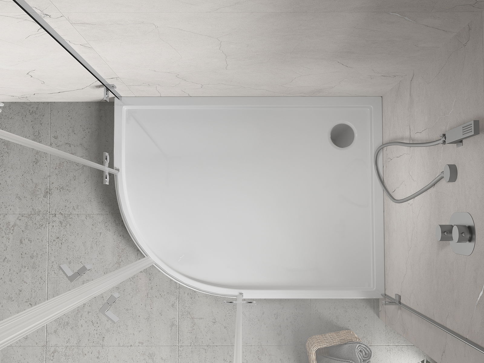Mexen Flow+ полукръгъл асиметричен десен душ поддушник 100 x 80 см, бял гланц - 46Q108010RH