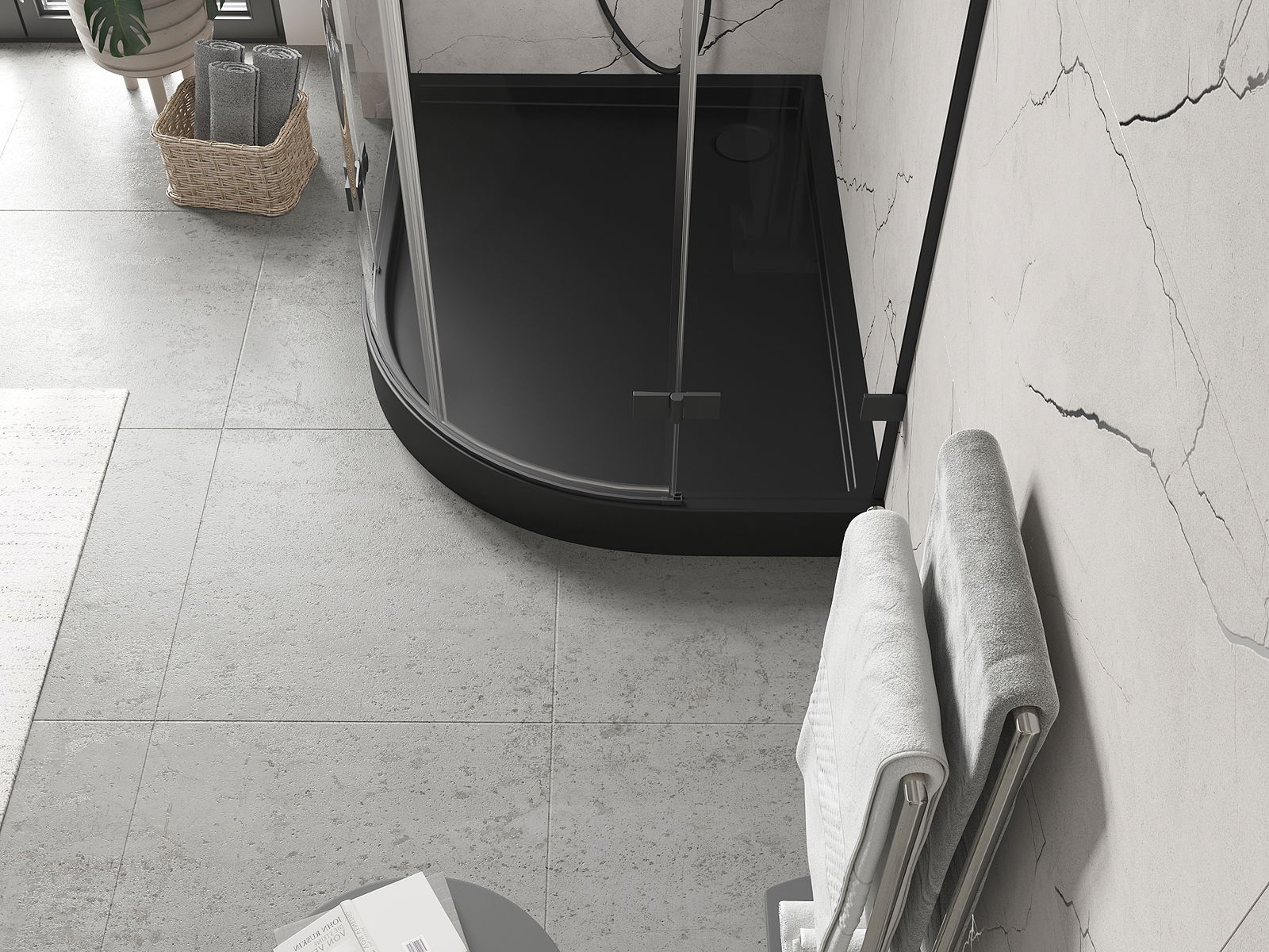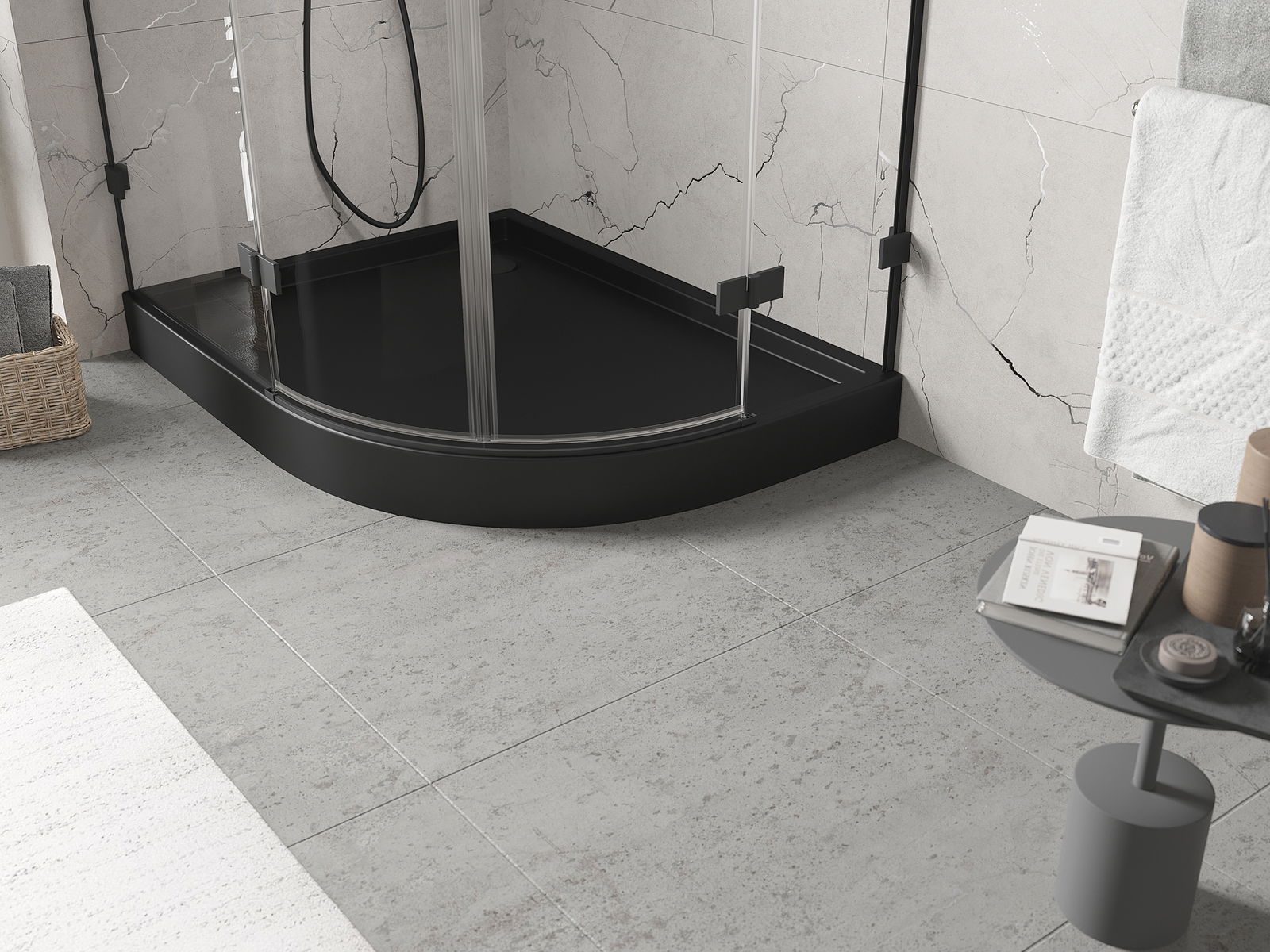 Mexen Flow+ полукръгъл асиметричен ляв душ подложка 90 x 80 см, черен мат - 46Q708090LH