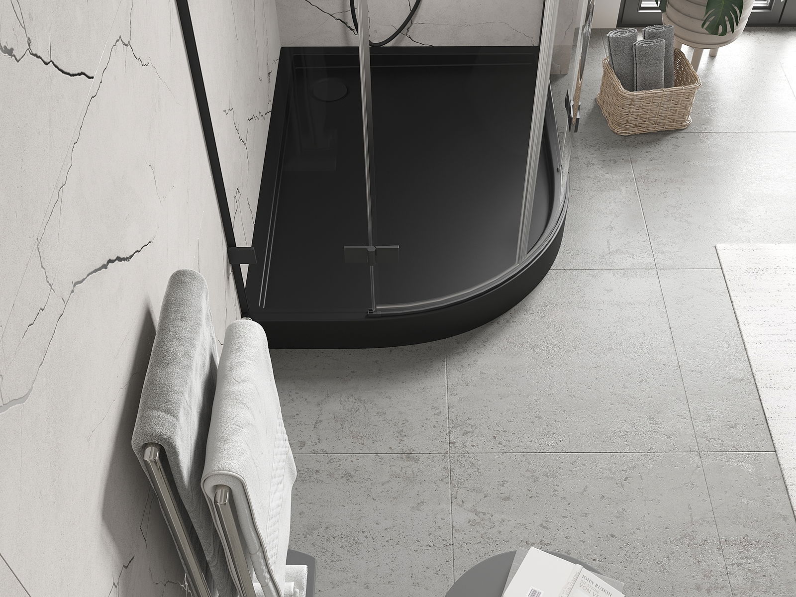 Mexen Flow+ полукръгъл асиметричен десен поддушник 90 x 80 cm, черен мат - 46Q708090RH