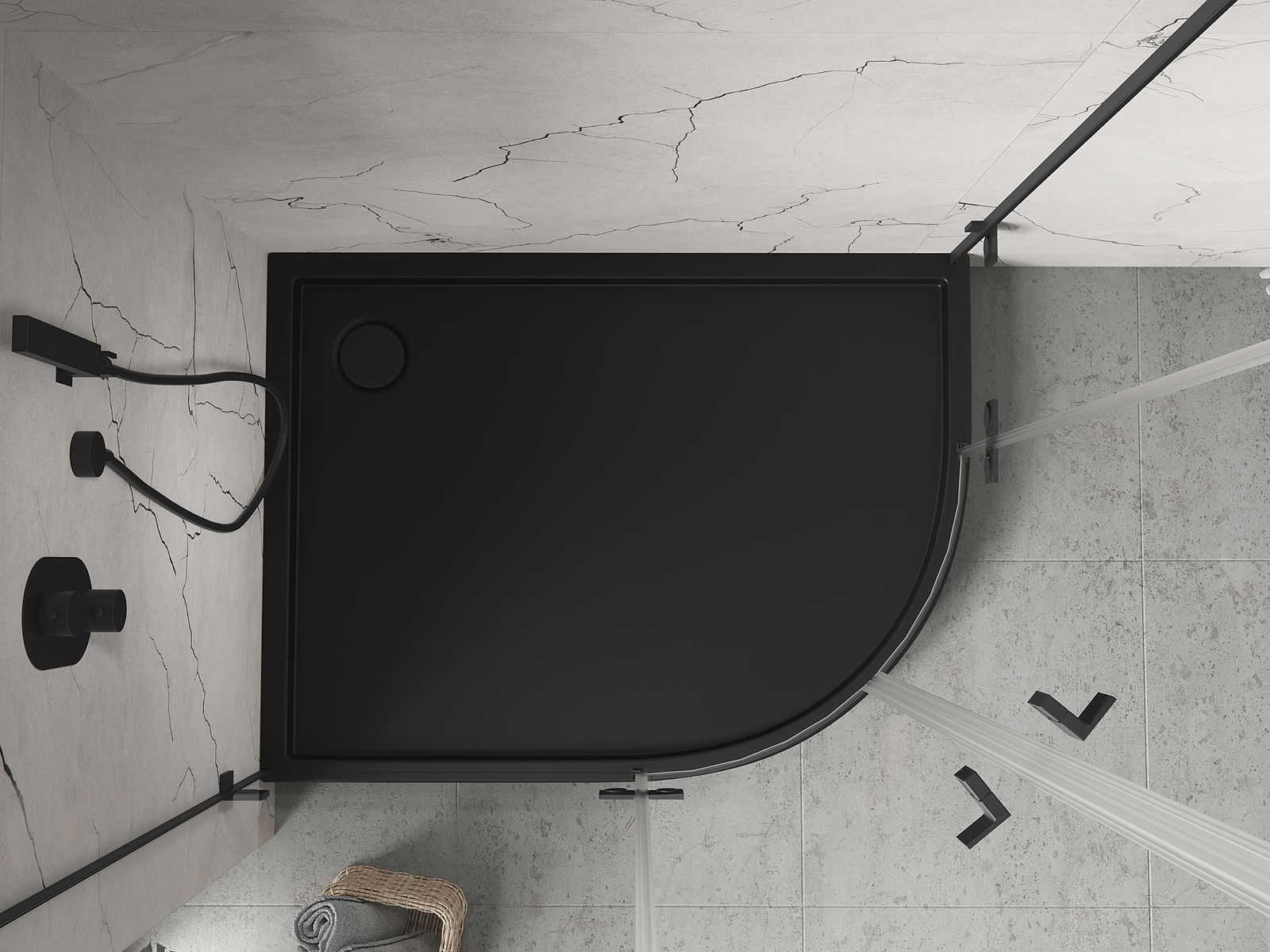 Mexen Flow+ полукръгла асиметрична лява душкабина 100 x 90 см, черен мат - 46Q709010LH