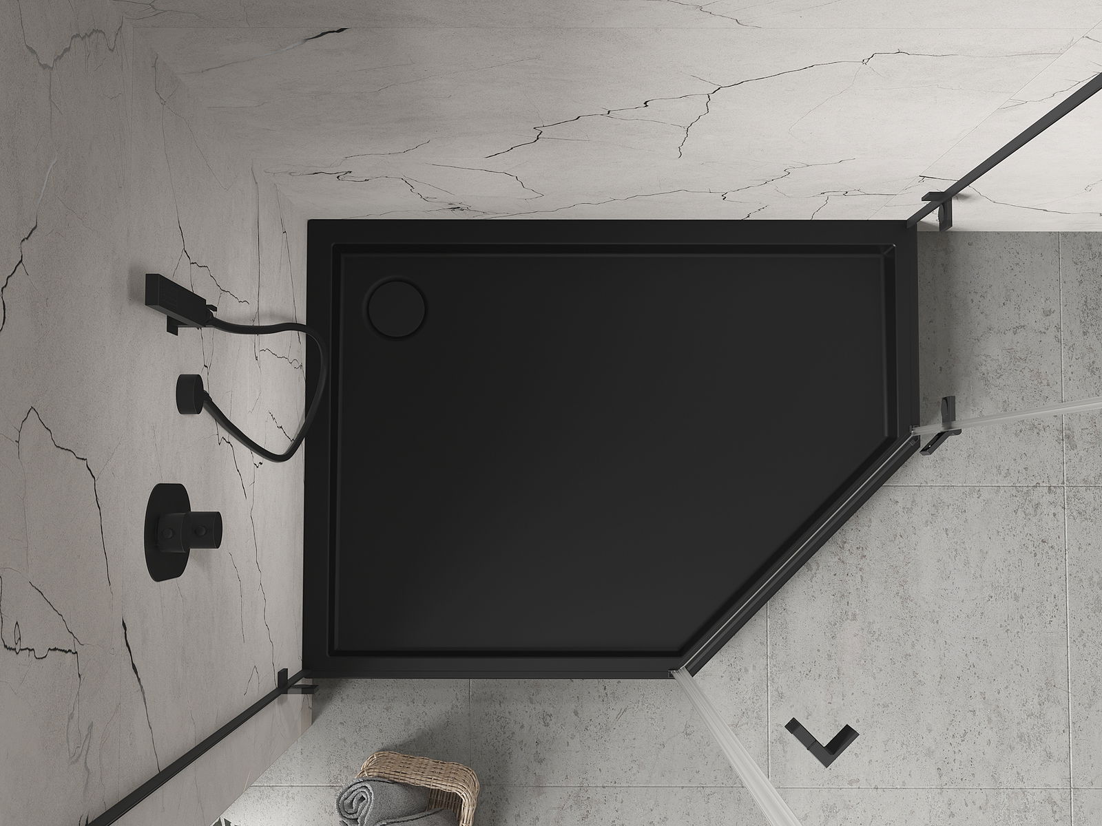 Mexen Flow+ петостенна чиния лява 80 x 100 см, черен мат - 46P708010LH