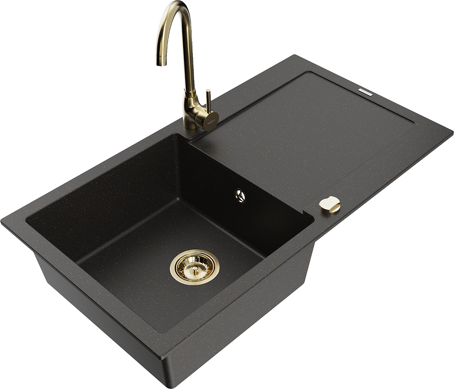 Mexen Leo гранитна мивка с 1 корито с отцедник и кухненски смесител Telma,