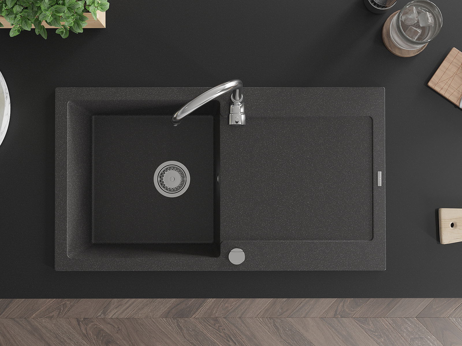 Мивката е направена от висококачествен гранит. Това е елегантно и най -вече практично допълнение към всяка кухня, независимо от нейния стил. Висококачествената и гранитна издръжливост осигуряват много години употреба.