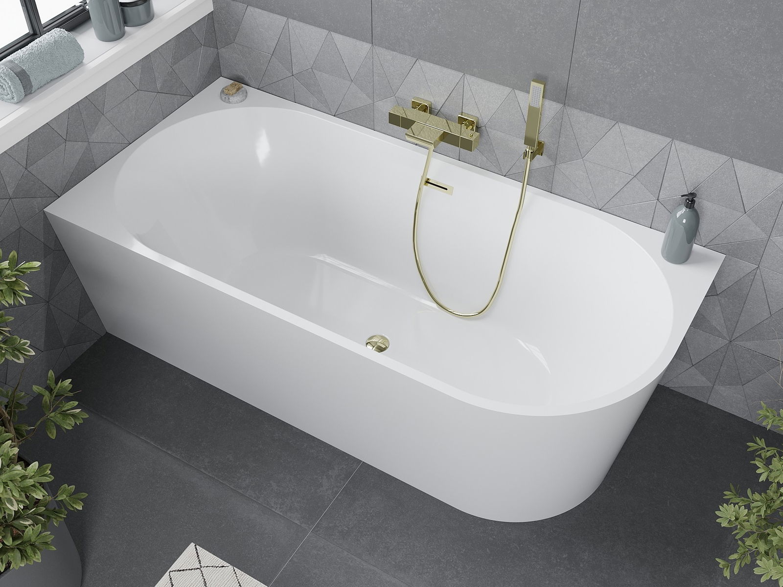 Mexen Mia свободностояща ъглова вана лява 160 x 80 см, бяла, прелив златен