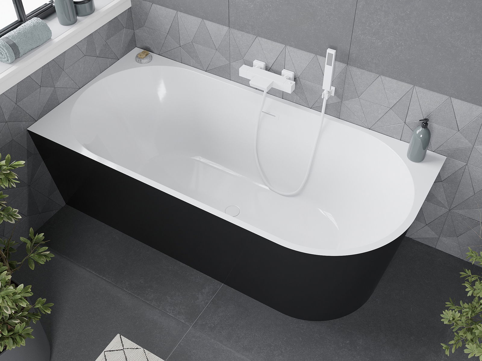 Mexen Mia самостоятелна ъглова вана лява 160 x 80 см, бяла/черна, бял