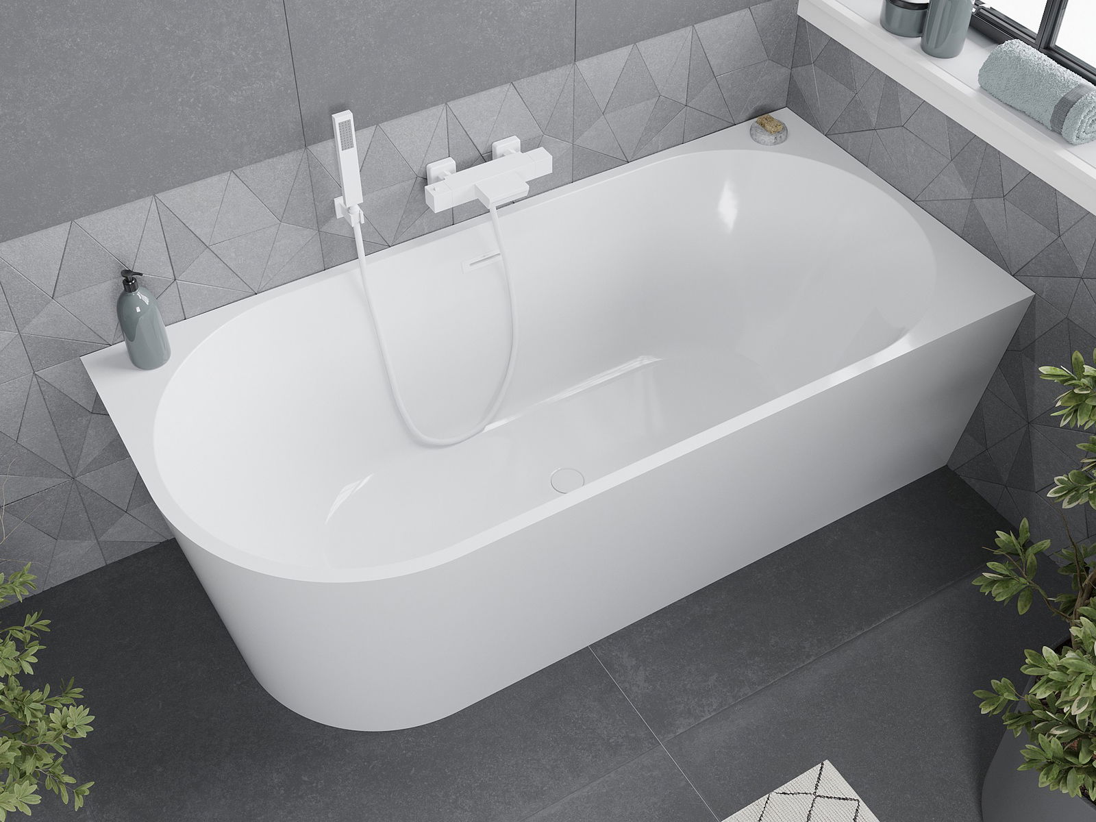 Mexen Mia Свободно стояща ъглова вана дясна, 160 x 80 см, бяла, бял преливник