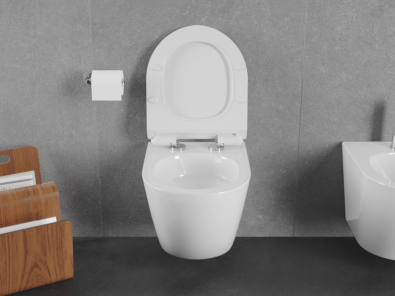 Безшумният капак на тоалетната е оборудван със специална система, която предотвратява бързото и внезапно падане. Системата ефективно елиминира проблема с тряскането на капака и минимизира шума, осигурявайки плавно и тихо затваряне на тоалетната.