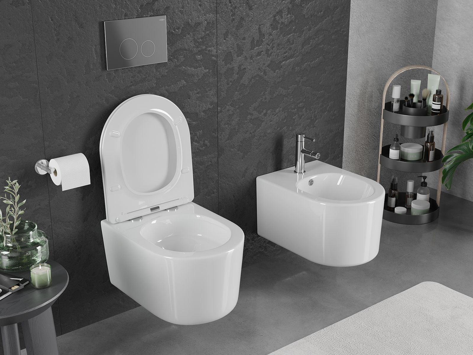 Безшумният капак на тоалетната е оборудван със специална система, която предотвратява бързото и внезапно падане. Системата ефективно елиминира проблема с тряскането на капака и минимизира шума, осигурявайки плавно и тихо затваряне на тоалетната.