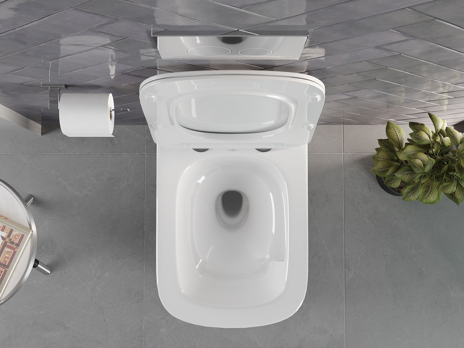 Безшумният капак на тоалетната е оборудван със специална система, която предотвратява бързото и внезапно падане. Системата ефективно елиминира проблема с тряскането на капака и минимизира шума, осигурявайки плавно и тихо затваряне на тоалетната.