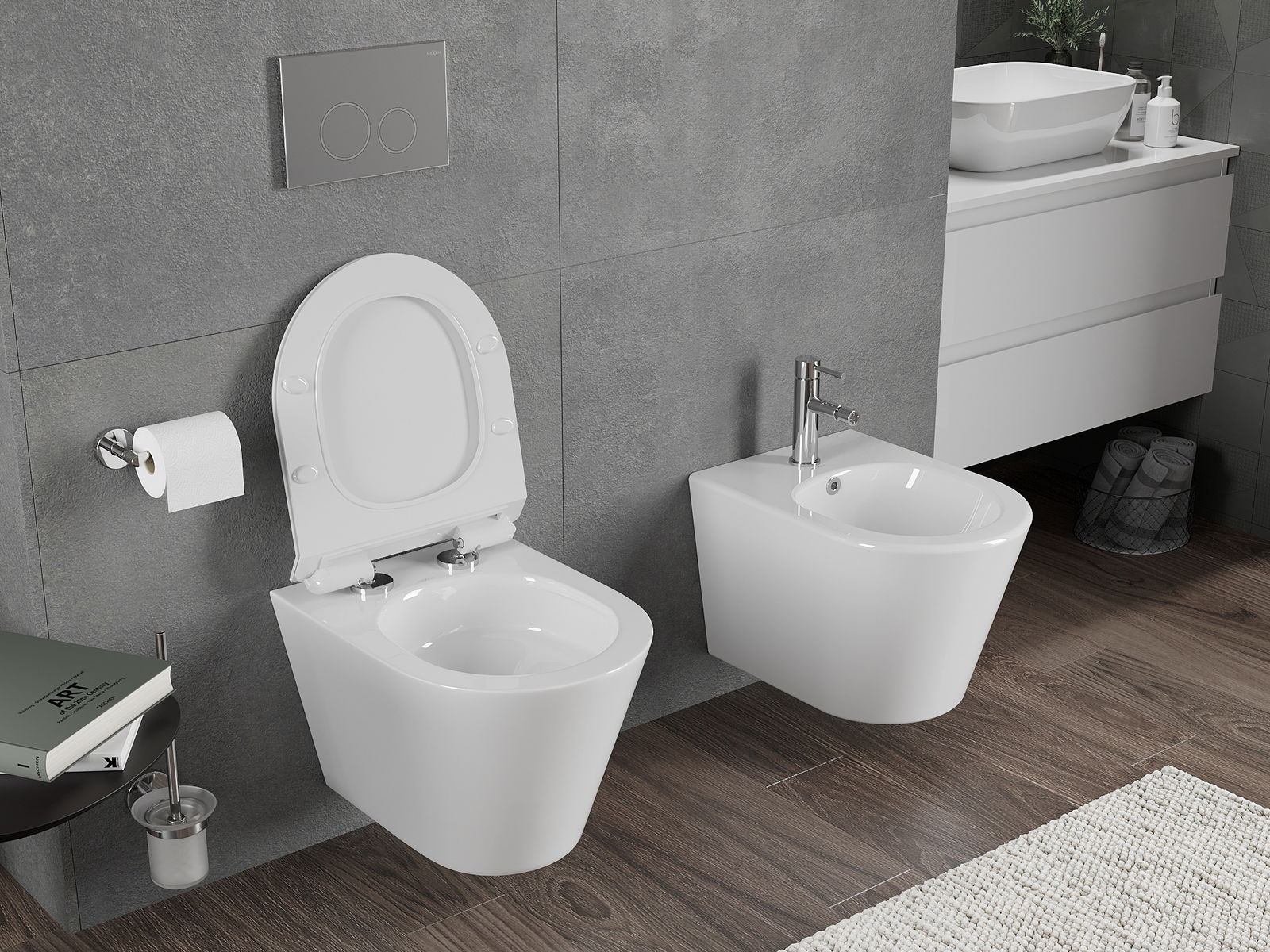 Безшумният капак на тоалетната е оборудван със специална система, която предотвратява бързото и внезапно падане. Системата ефективно елиминира проблема с тряскането на капака и минимизира шума, осигурявайки плавно и тихо затваряне на тоалетната.