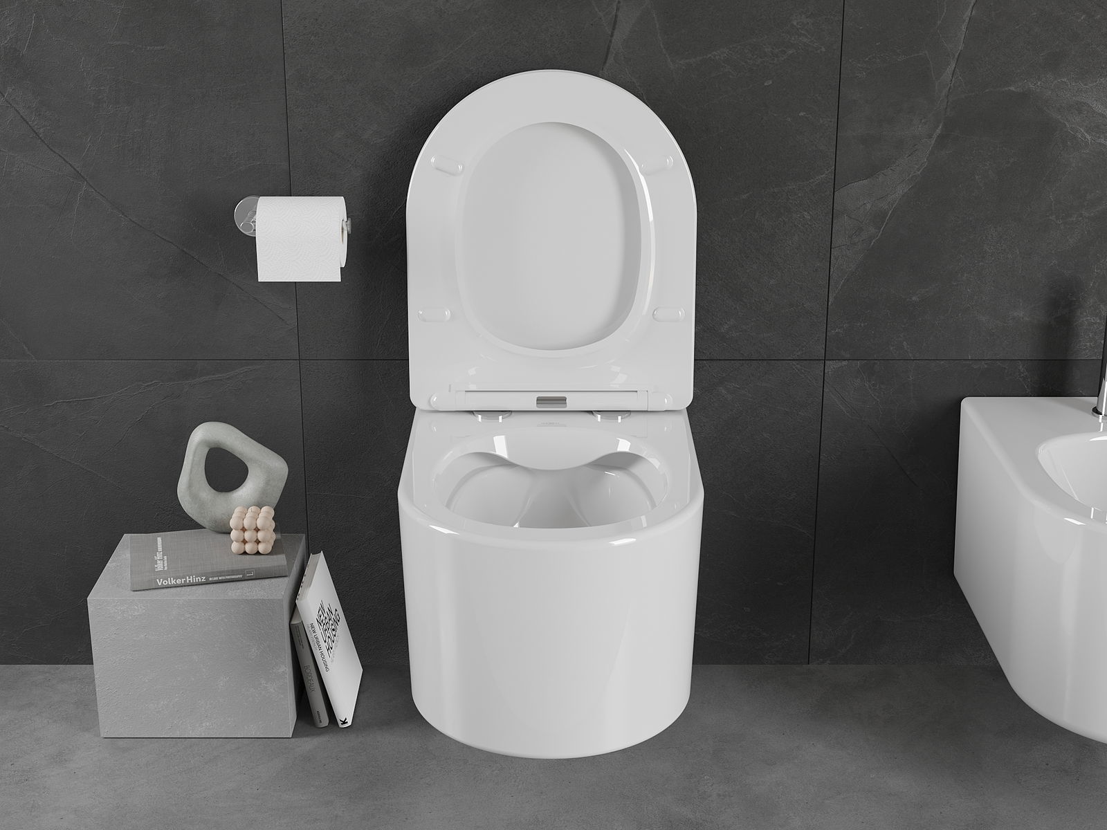 Безшумният капак на тоалетната е оборудван със специална система, която предотвратява бързото и внезапно падане. Системата ефективно елиминира проблема с тряскането на капака и минимизира шума, осигурявайки плавно и тихо затваряне на тоалетната.