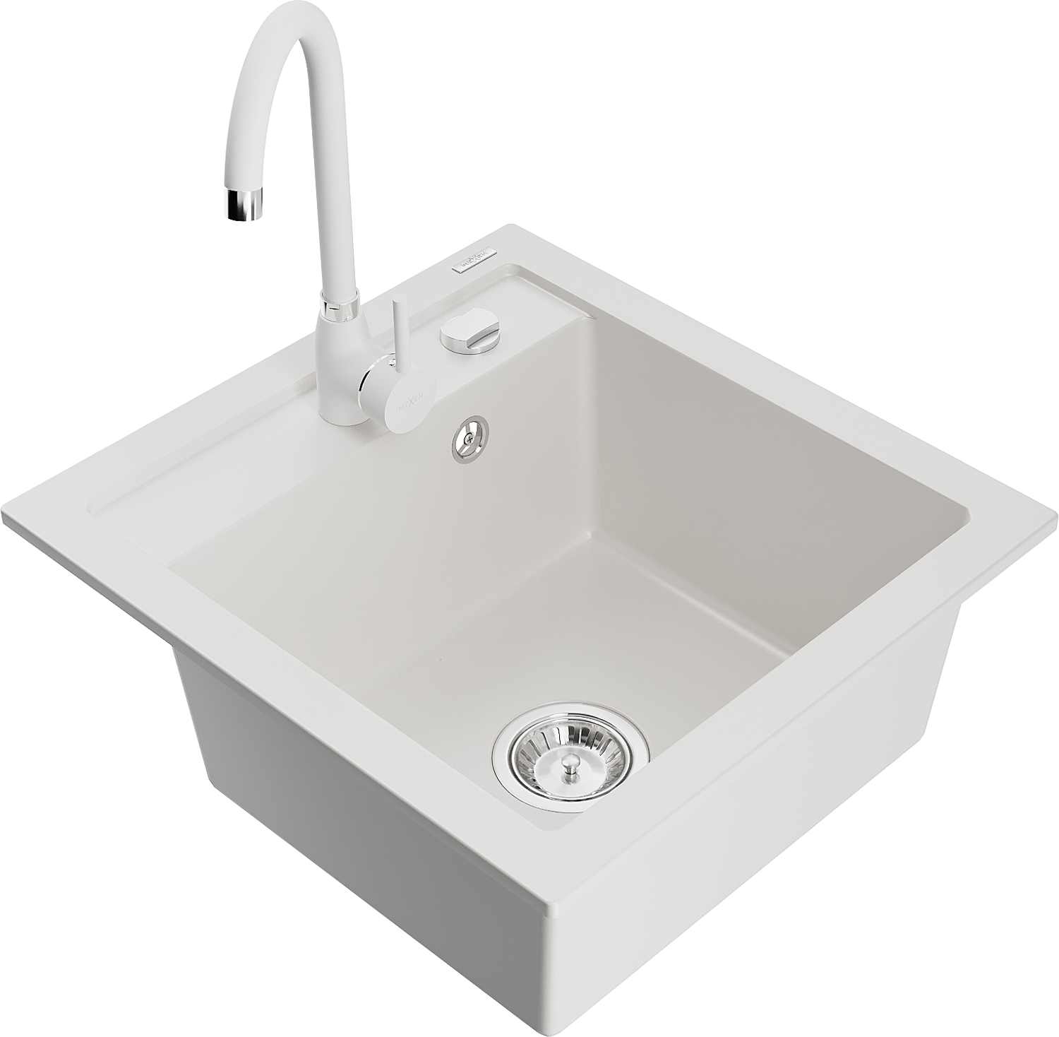 Mexen Vito гранитна мивка с 1 отделение с кухненски смесител Telma, бял - 6503-20-670200-20