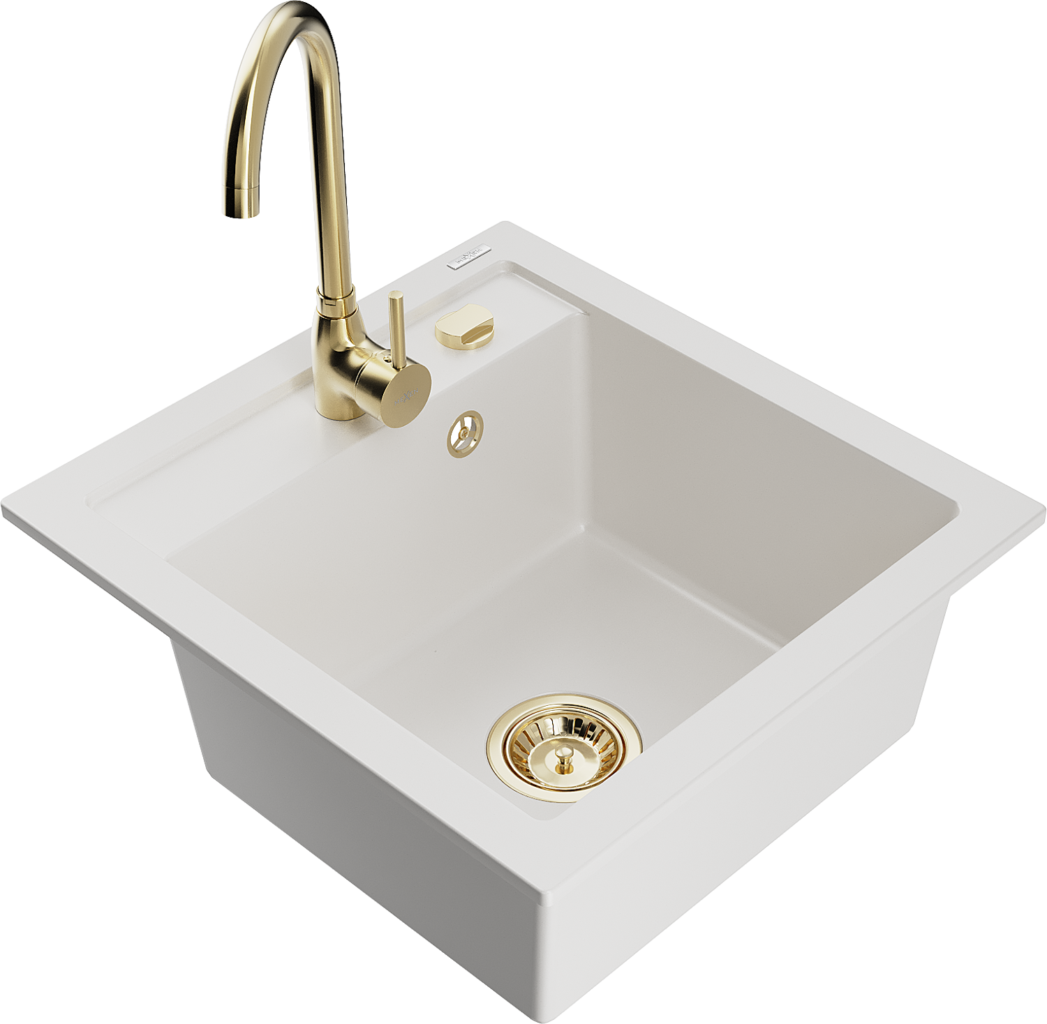 Mexen Vito гранитна мивка с 1 камера с кухненски смесител Telma, бяла - 6503-20-670200-50