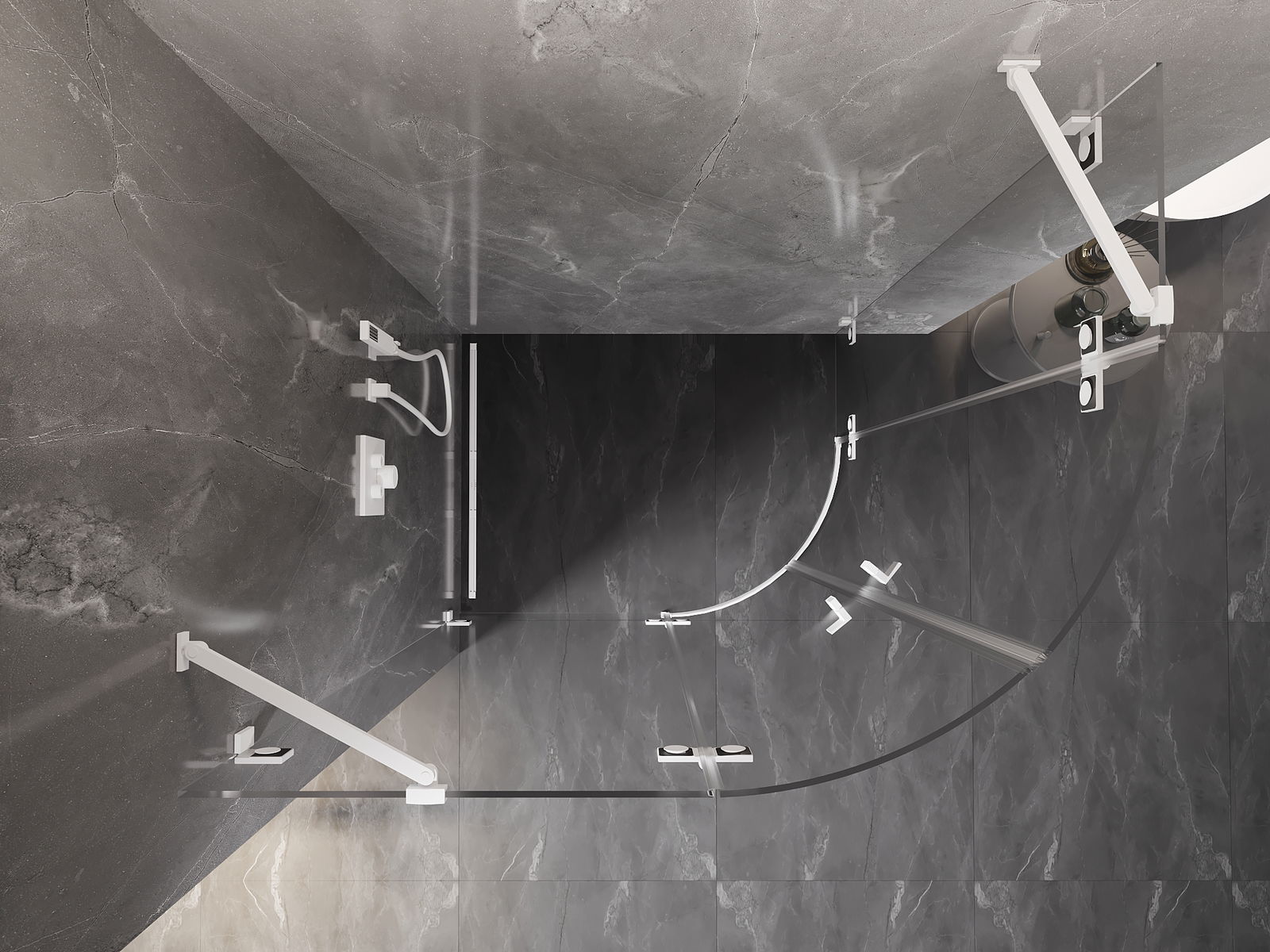 Удобната и практична дръжка е изработена от здрав и устойчив метал. Модерната форма в съчетание с покритието, съответстващо на цвета на профилите, придава на цялото модерен и стилен вид, подчертавайки естетиката на всяка баня.
