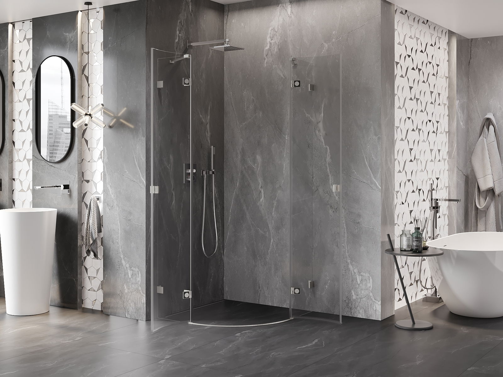 Скобите и пантите са изработени от много издръжлив месинг и създават плосък стъклен панел. Това е отличен избор, който съчетава елегантност, издръжливост и модерен дизайн. Благодарение на такива решения, душът придобива естетика и същевременно улеснява поддържането на чистота.