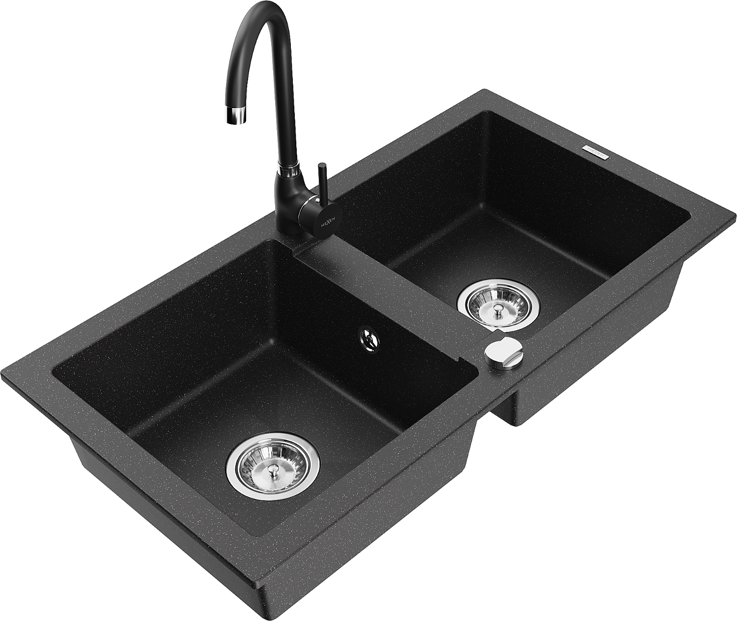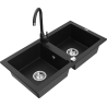 Mexen Mario гранитна кухненска мивка с 2 камери с кухненски смесител Telma, черно/сребристо - 6504-73-670200-70