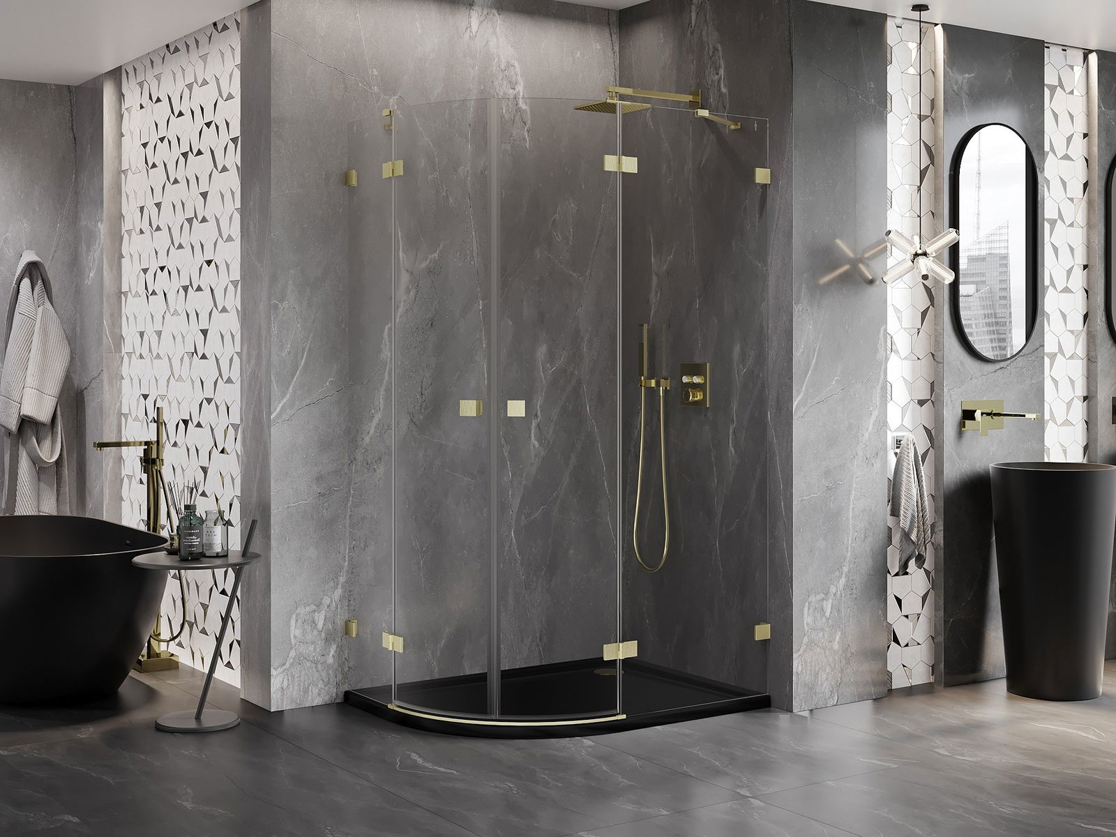 Скобите и пантите са изработени от много издръжлив месинг и създават плосък стъклен панел. Това е отличен избор, който съчетава елегантност, издръжливост и модерен дизайн. Благодарение на такива решения, душът придобива естетика и същевременно улеснява поддържането на чистота.