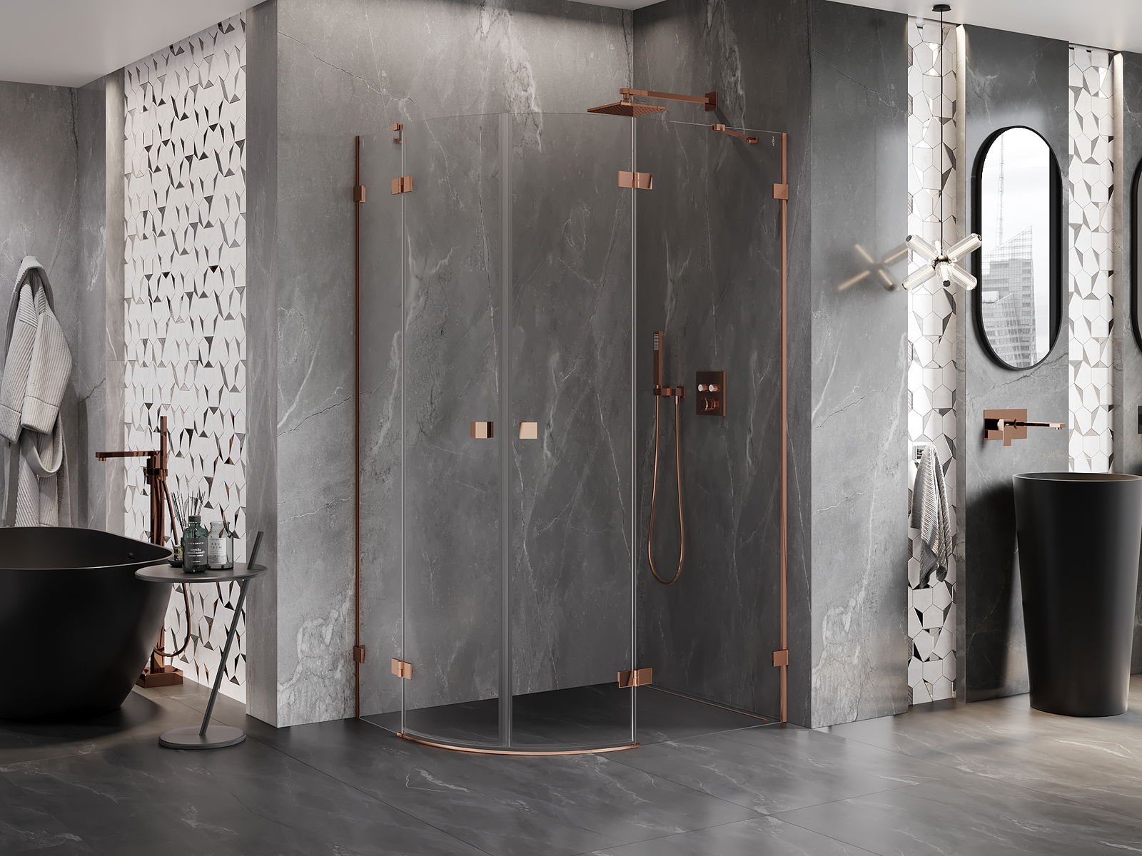 Mexen Lunar полукръгла душ кабина, отваряща се врата, дясна 90 x 80 см, прозрачна, розово злато - 833-090P-080L-60-00