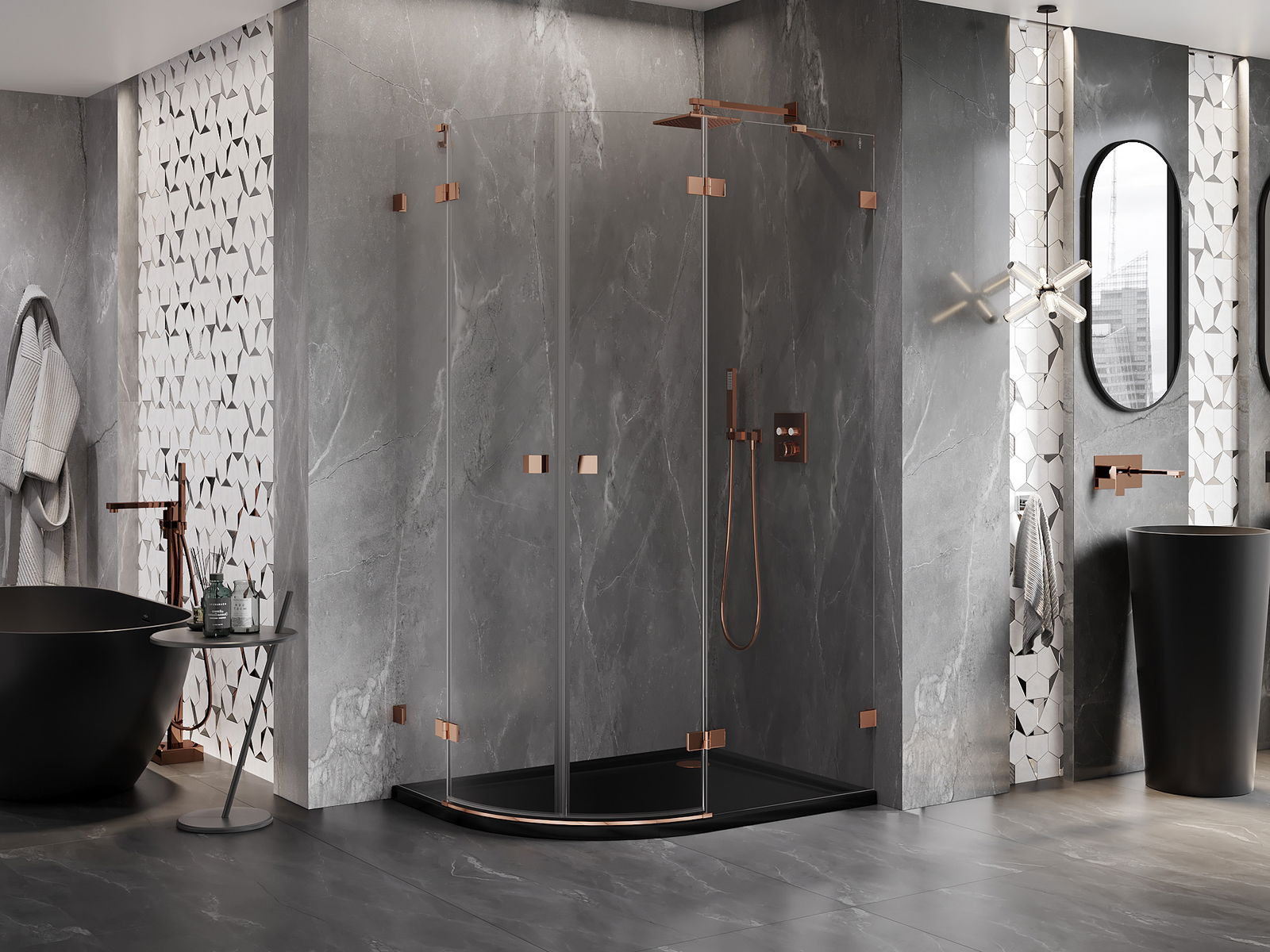 Mexen Lunar полукръгла душ кабина с отваряеми врати, дясна, 100 x 70 cm, прозрачна, розово злато - 833-100P-070L-60-00