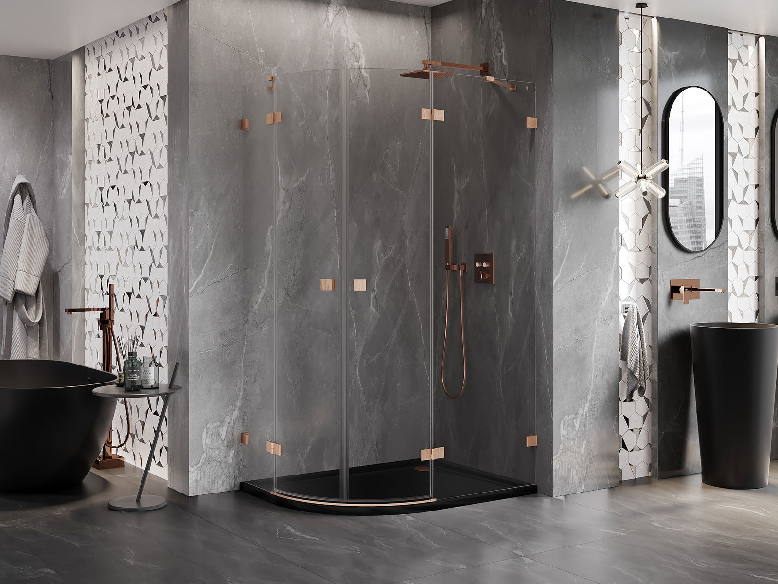 Mexen Lunar полукръгла душ кабина с реверсивна врата, дясна, 100 x 90 cm, прозрачна, матиран мед - 833-100P-090L-65-00