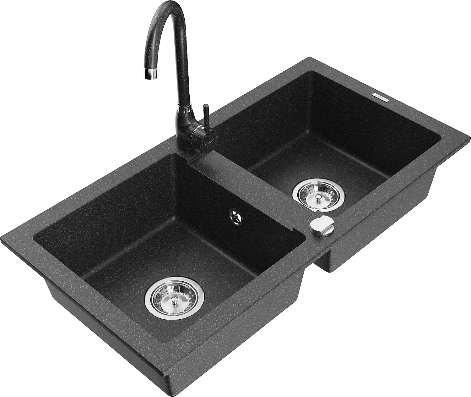 Mexen Mario двоен гранитен кухненски мивка с батерия Telma, черно на точки - 6504-76-670200-76