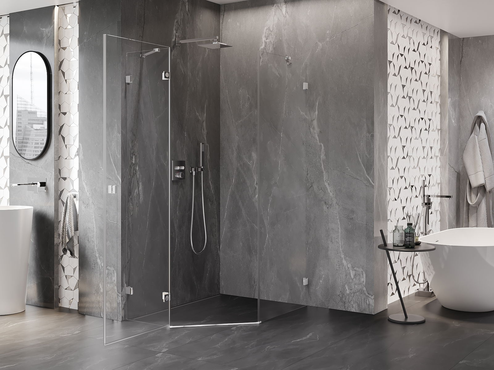 Скобите и пантите са изработени от много издръжлив месинг и създават плосък стъклен панел. Това е отличен избор, който съчетава елегантност, издръжливост и модерен дизайн. Благодарение на такива решения, душът придобива естетика и същевременно улеснява поддържането на чистота.
